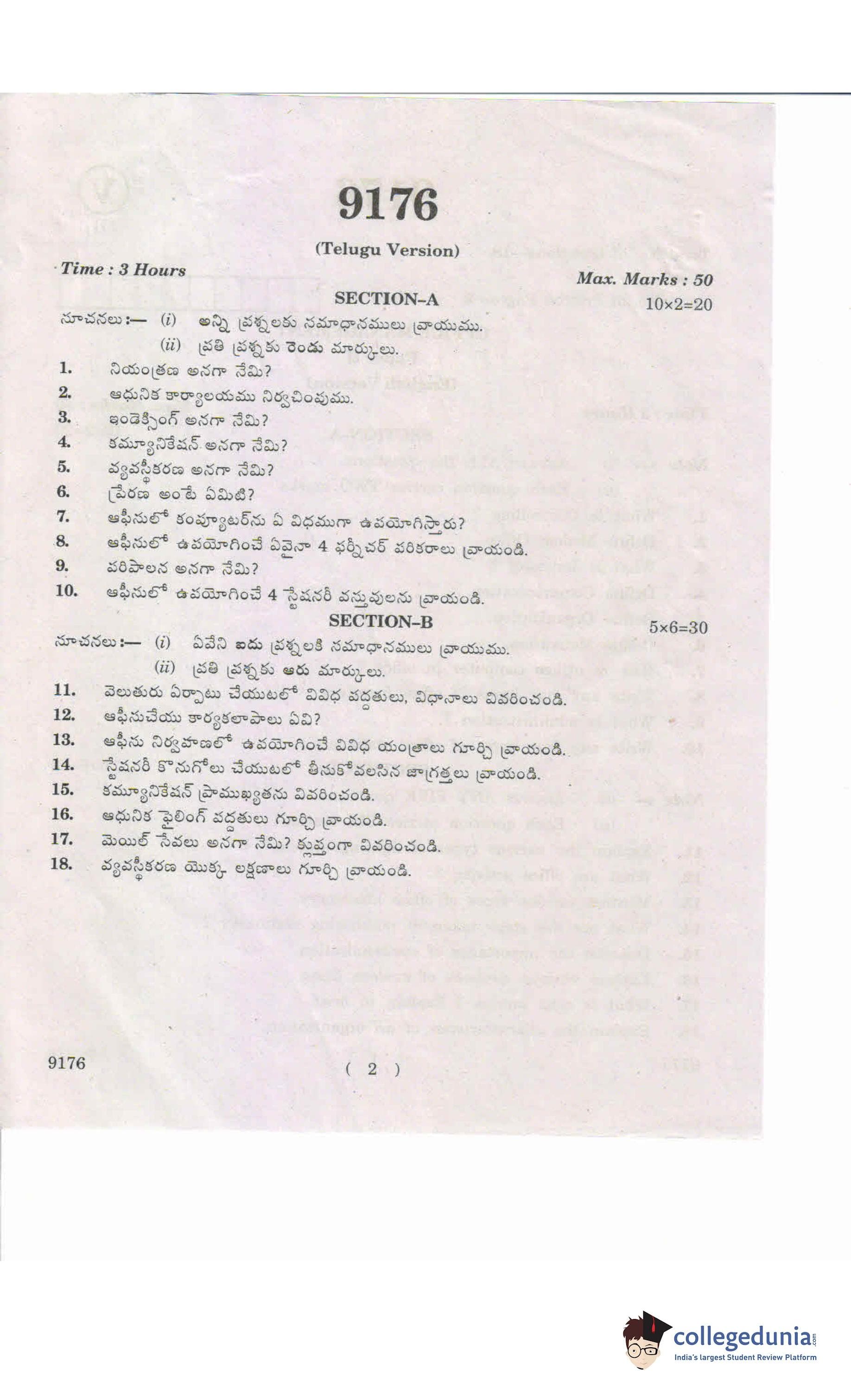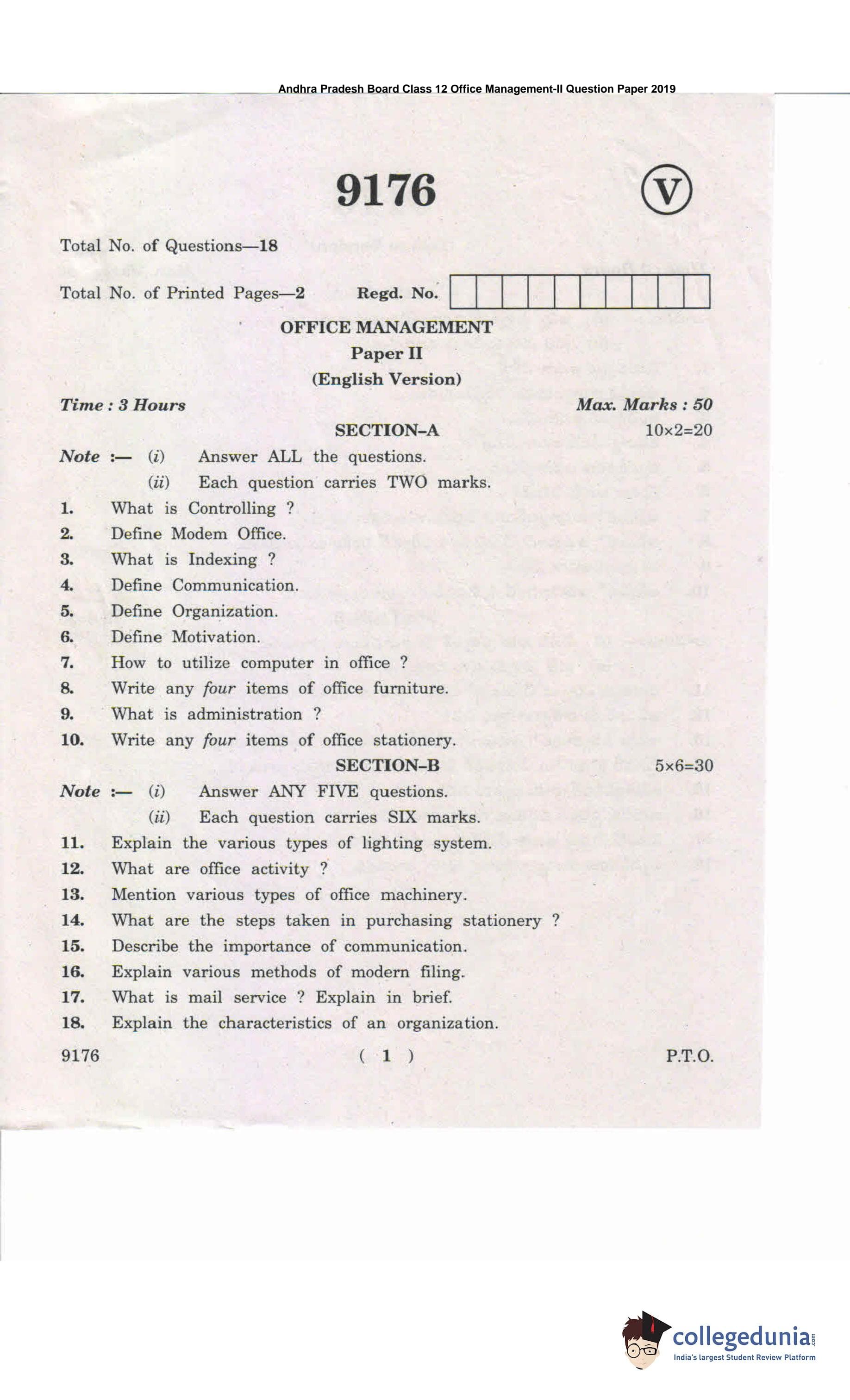 AP Intermediate 2nd year Office Management Question Paper 2019 with Answer Key