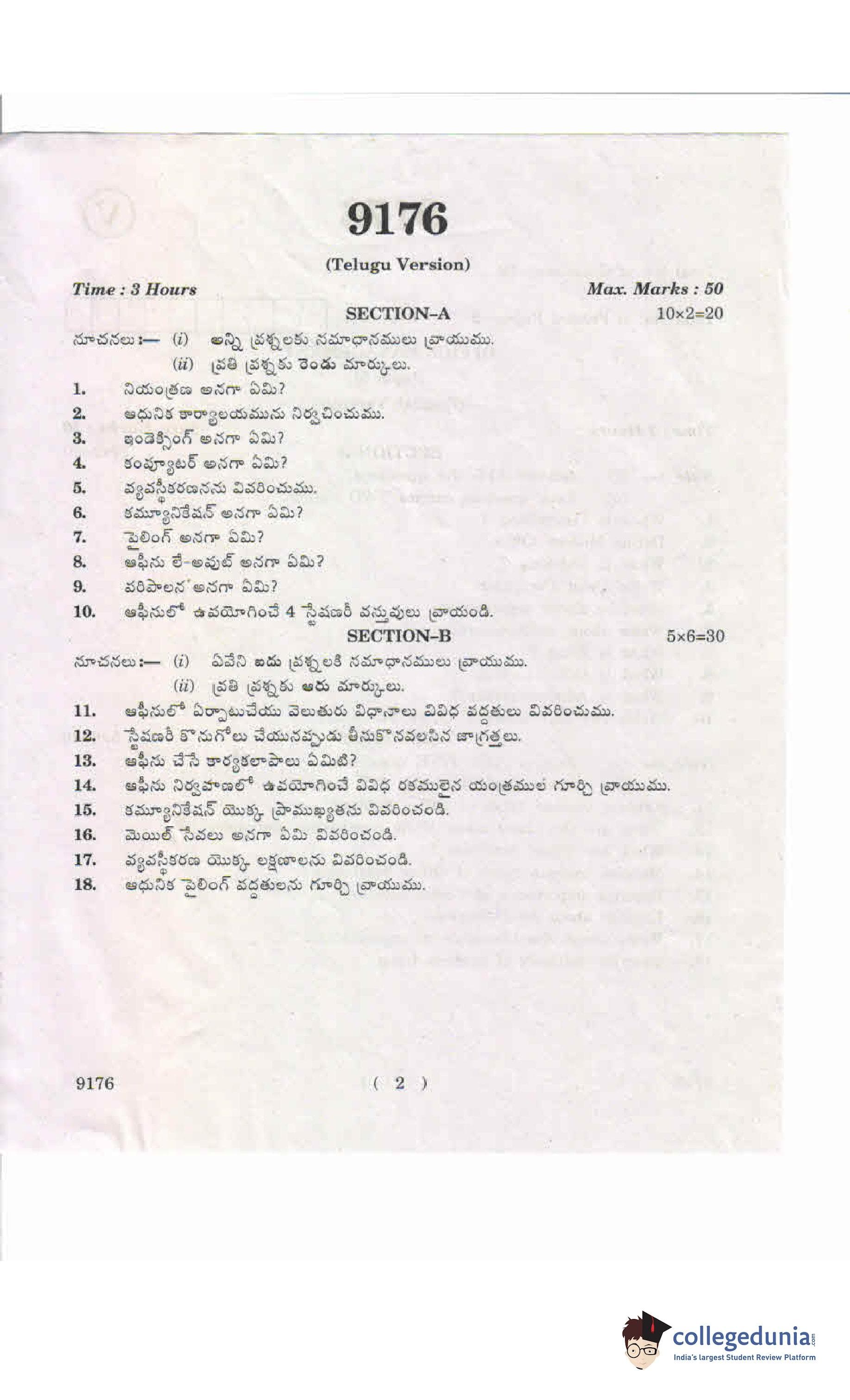 AP Intermediate 2nd year Office Management 9176 Supplementary Question Paper 2019