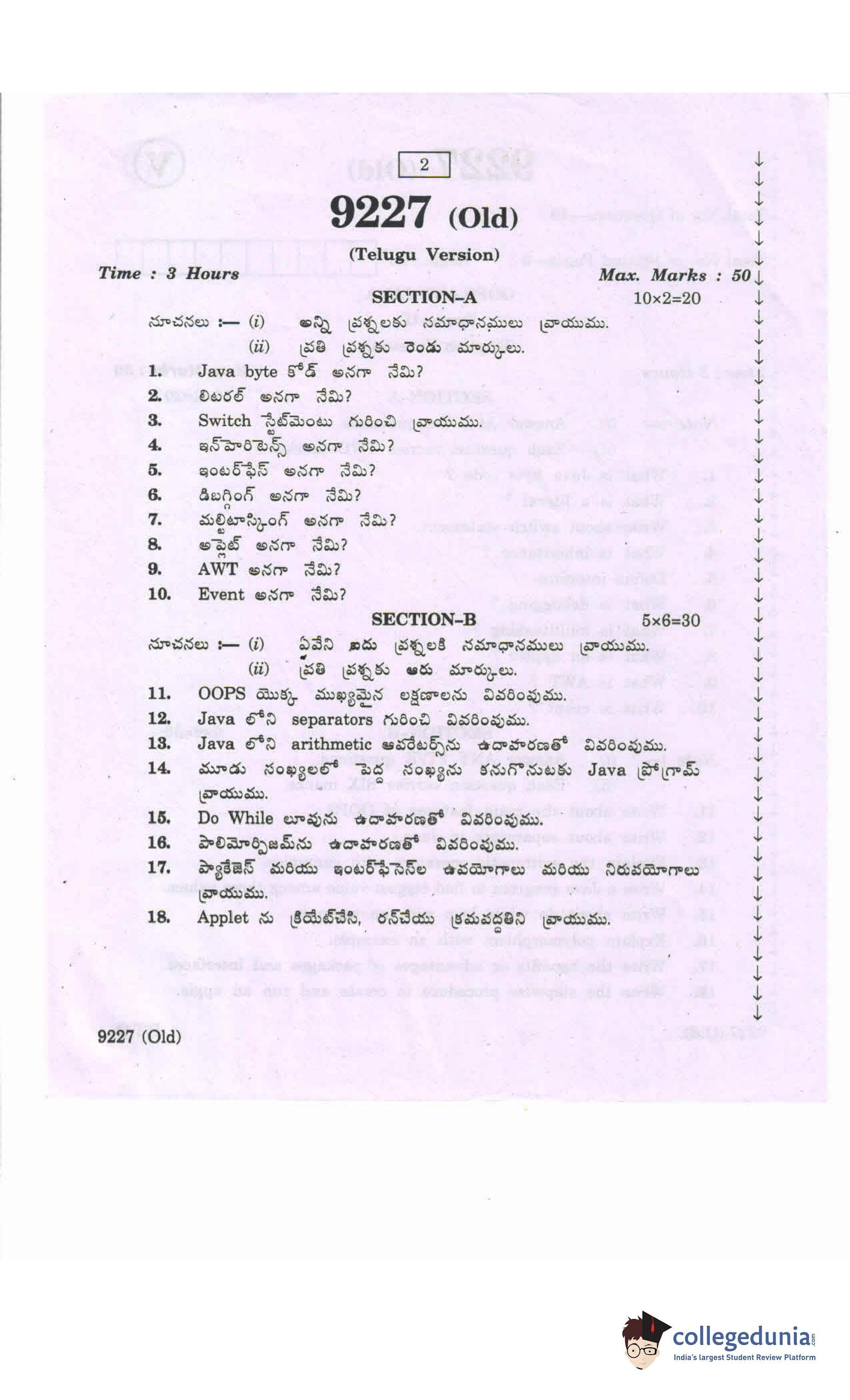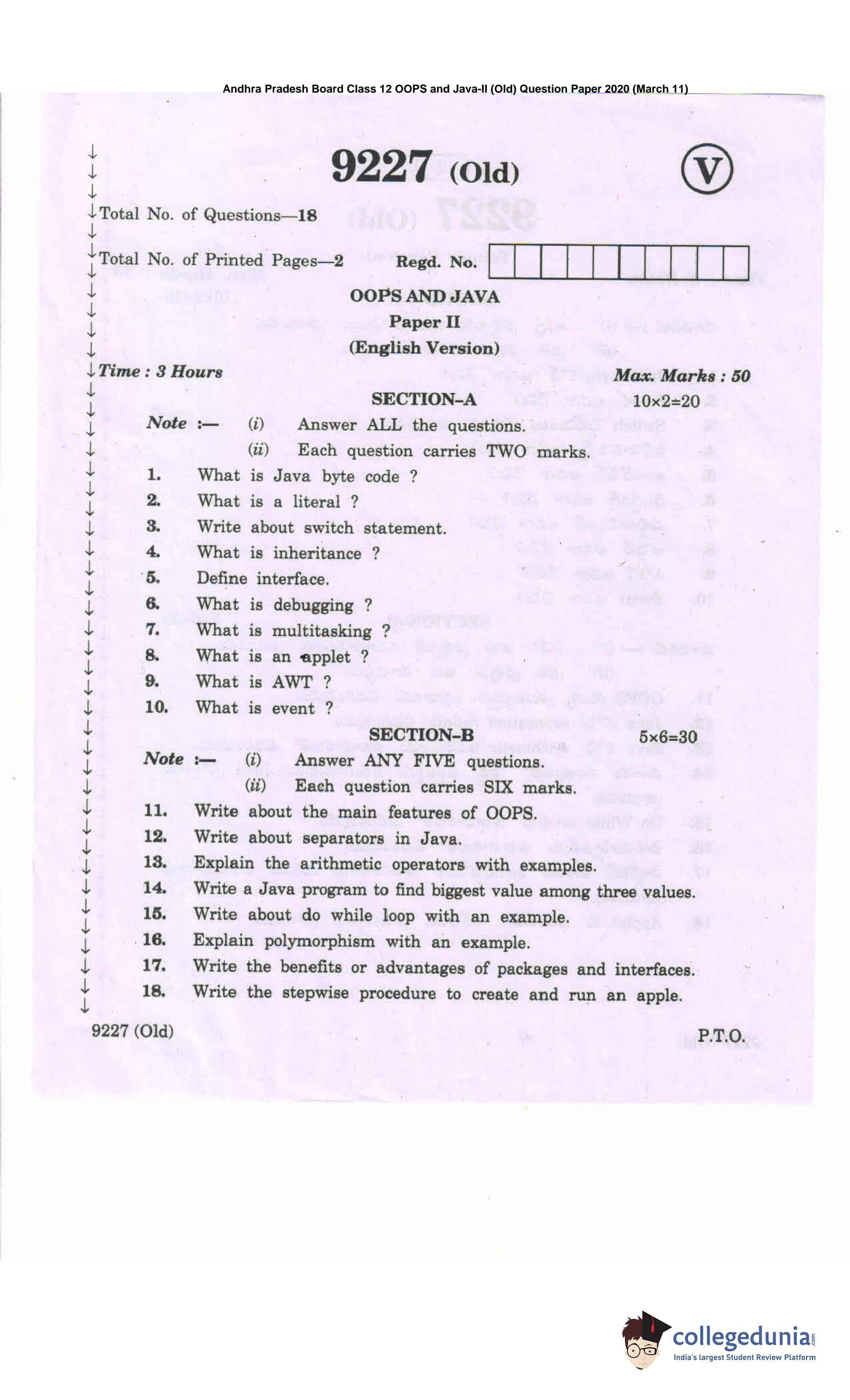 AP Intermediate 2nd year OOPS and Java (Old) Question Paper 2020 with Answer Key (March 11)