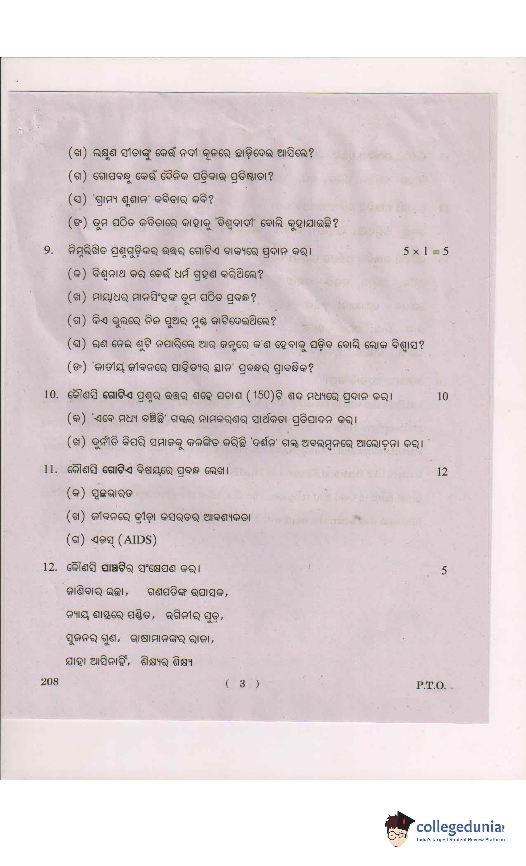 AP Intermediate 2nd year Oriya Question Paper 2018 with Answer Key is available for download. The exam was conducted by the Andhra Pradesh Board of Intermediate Education (APBIE) on March 1, 2018 in the Morning Session 9 AM to 12 PM. The medium of paper was Oriya.The question paper comprised a total of 16 questions.