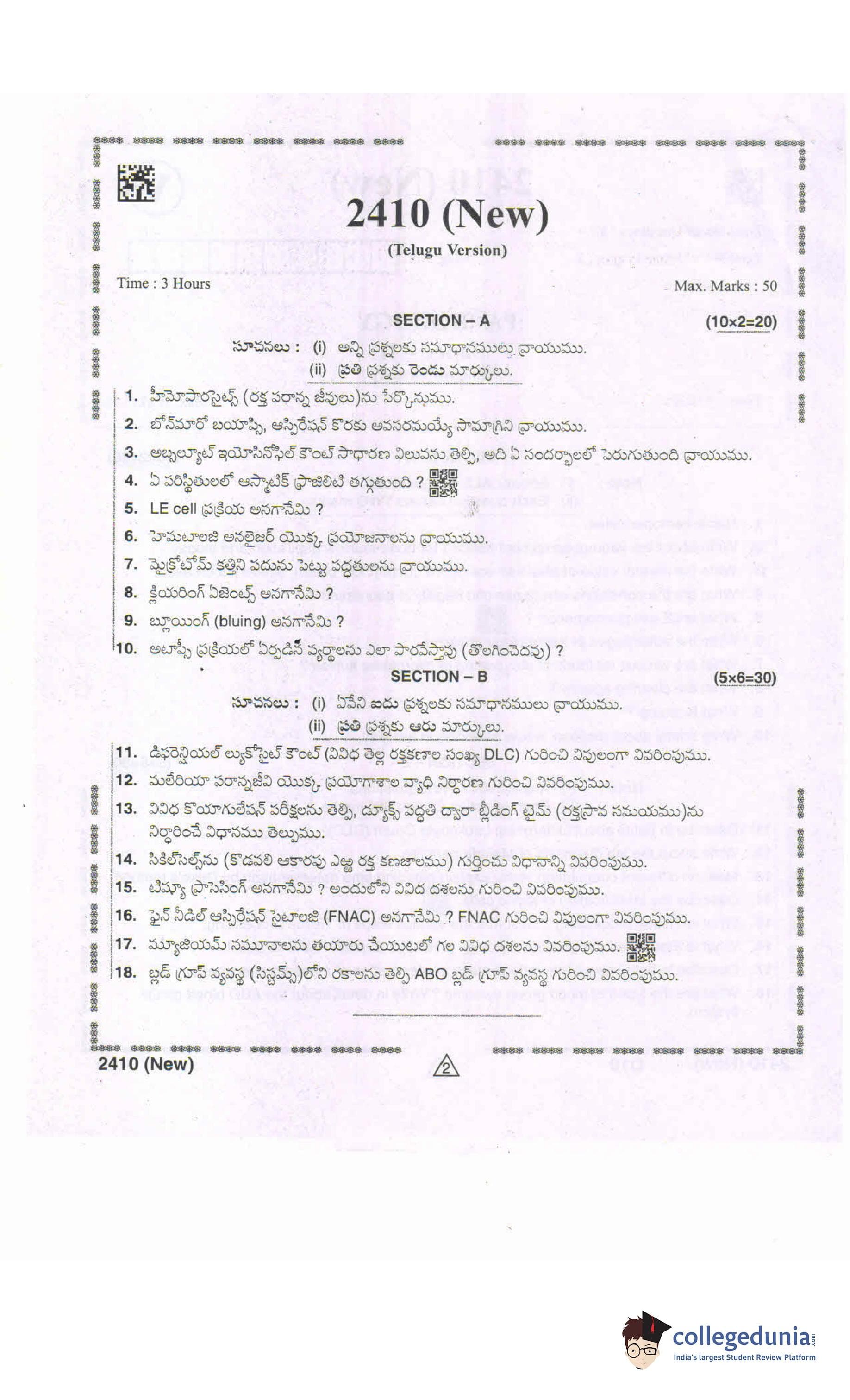AP Intermediate 2nd year Pathology Supplementary Question Paper 2021