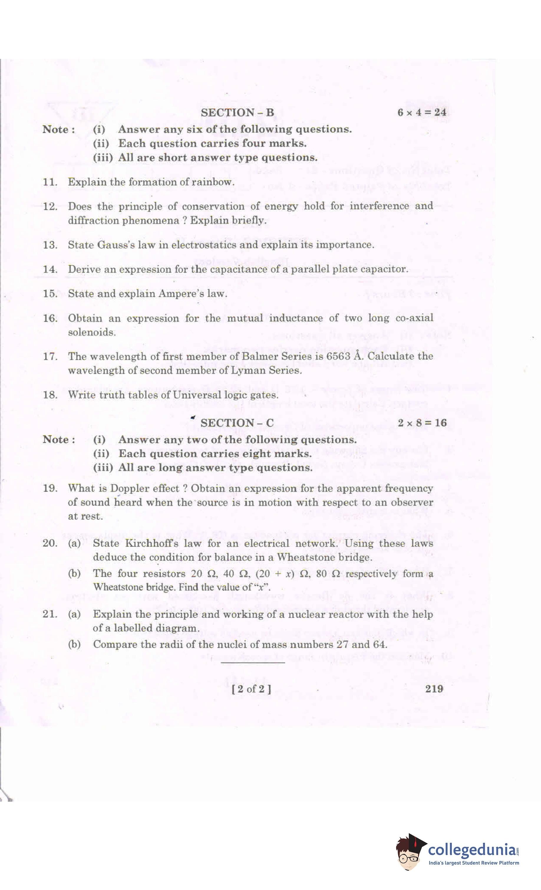 AP Intermediate 2nd year Physics Question Paper 2020 with Answer Key 219 is available for download. The exam was conducted by the Andhra Pradesh Board of Intermediate Education (APBIE) on March 16, 2020 in the Morning Session 9 AM to 12 PM. The medium of paper was English.The question paper comprised a total of 21 questions divided among 3 sections.