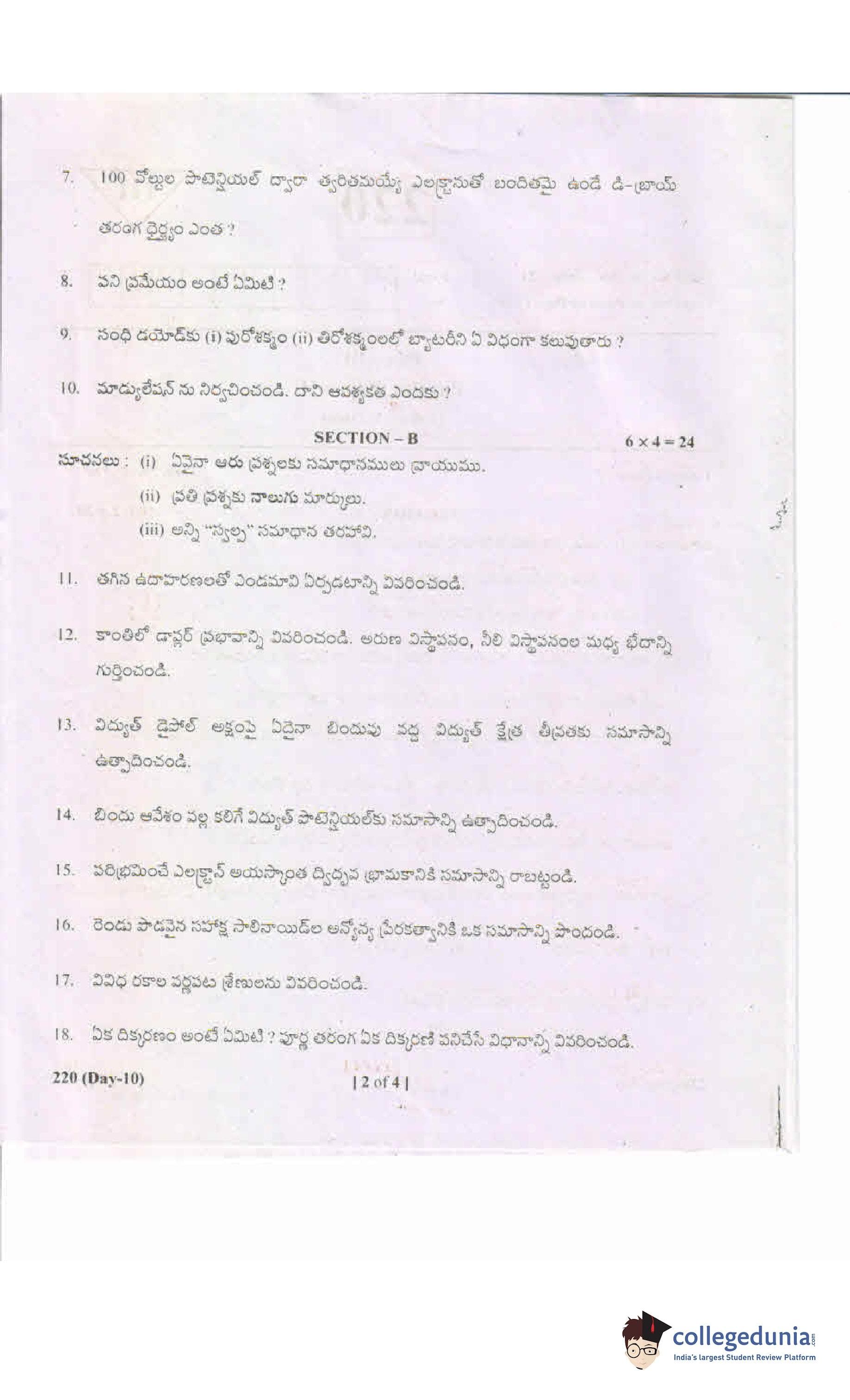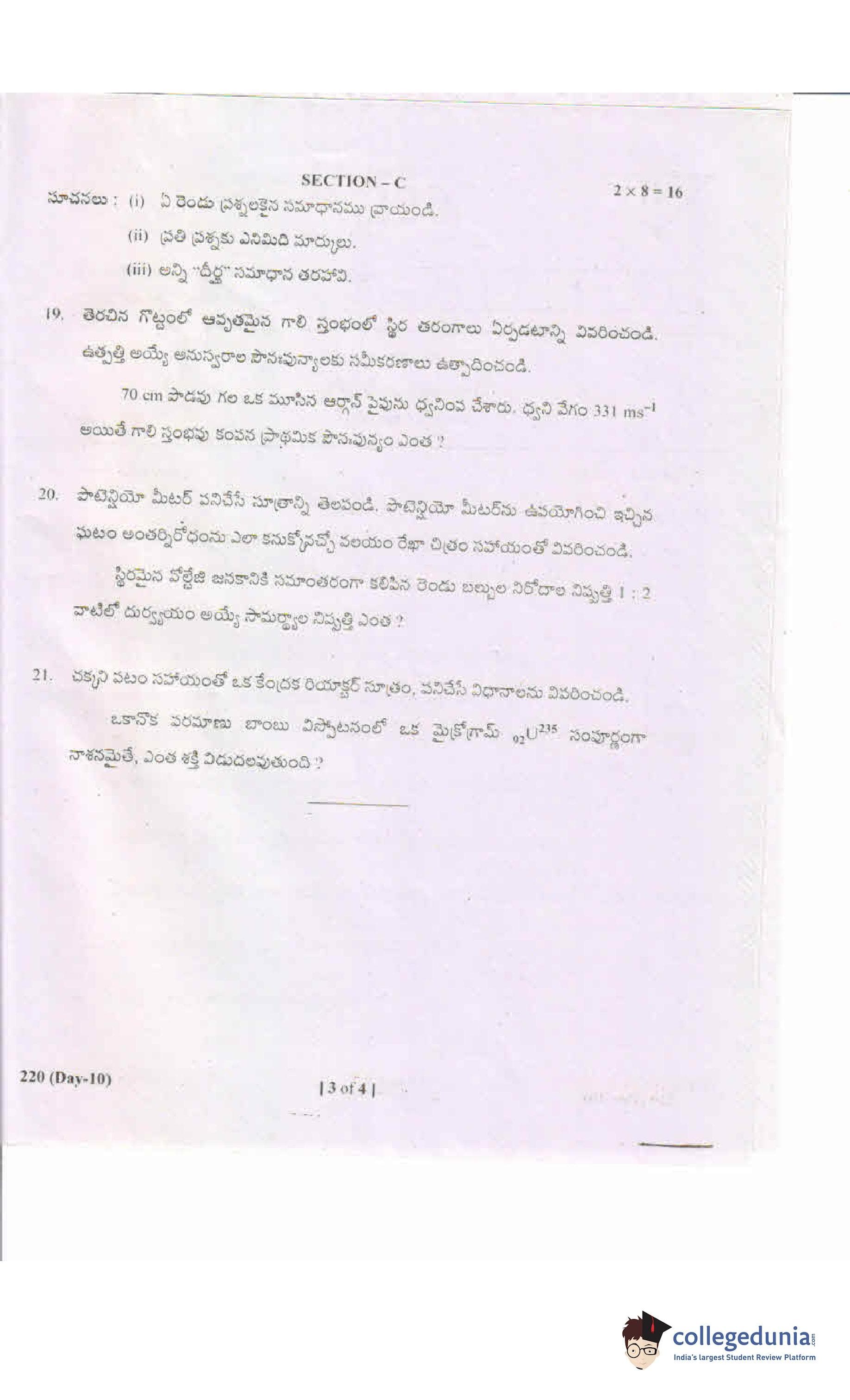 AP Intermediate 2nd year Physics (Telugu) 220 Supplementary Question Paper 2019 (May 18)