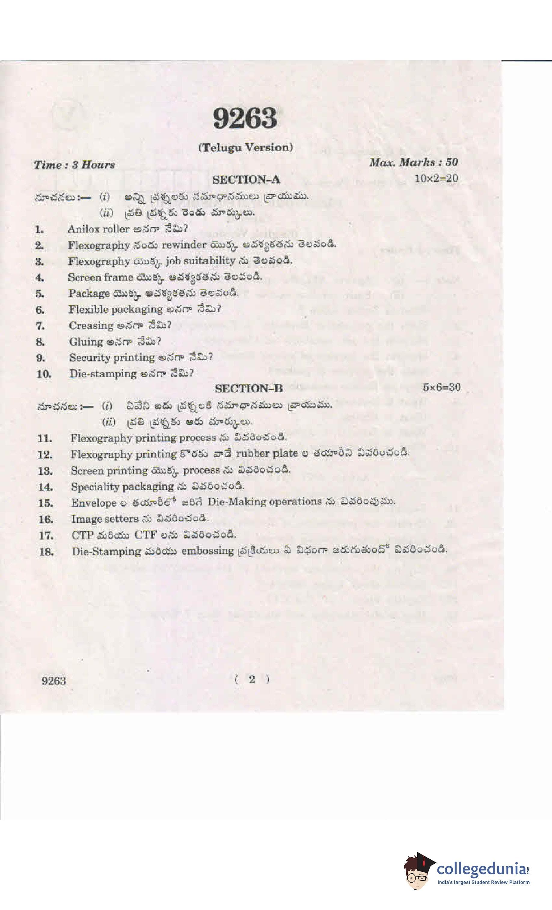 AP Intermediate 2nd year Presswork and Finishing 9263 Supplementary Question Paper 2019