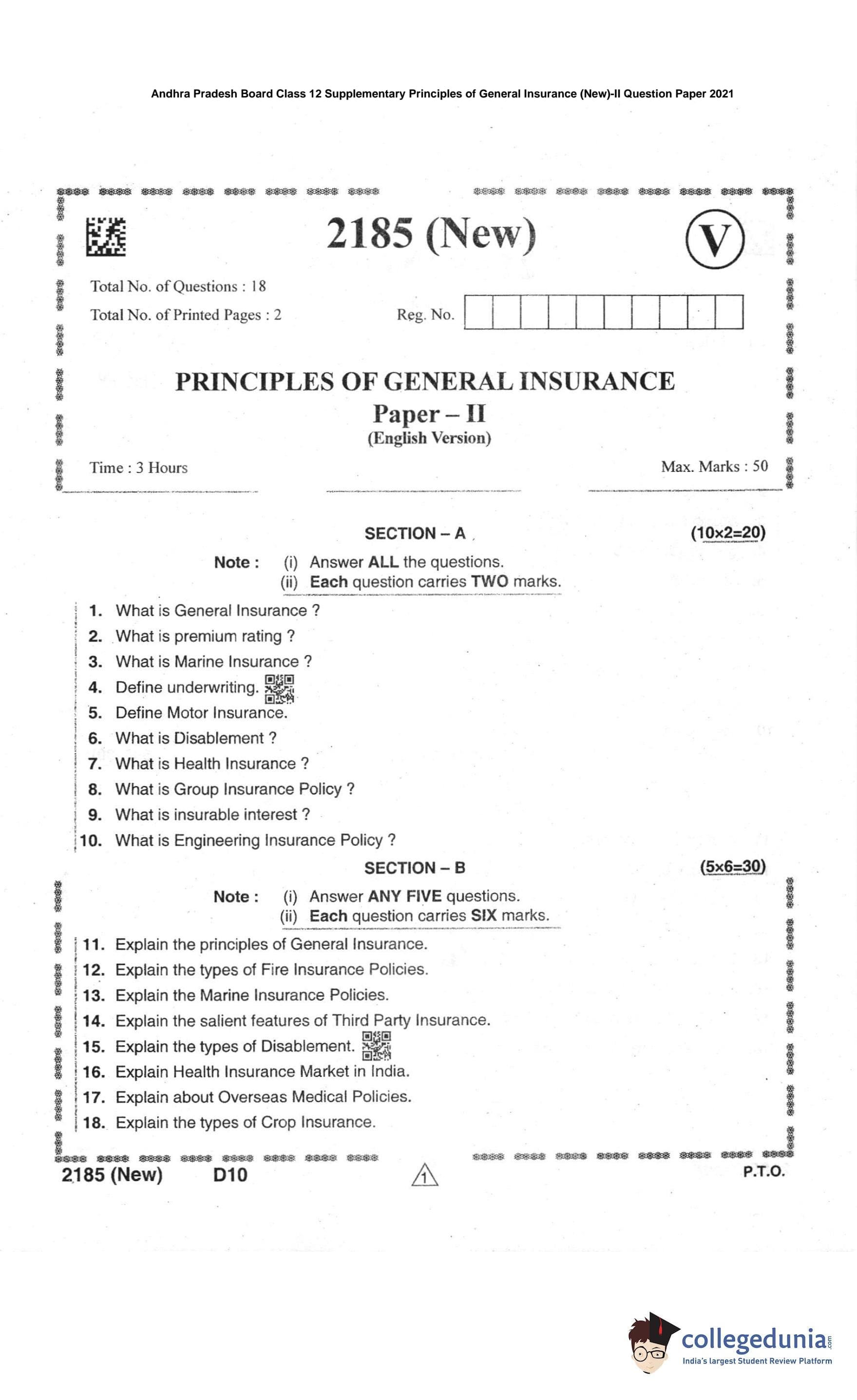 | AP Intermediate 2nd year Principles of General Insurance (New) Question Paper 2021 PDF | AP Intermediate 2nd year Principles of General Insurance (New) Answer Key 2021 PDF |