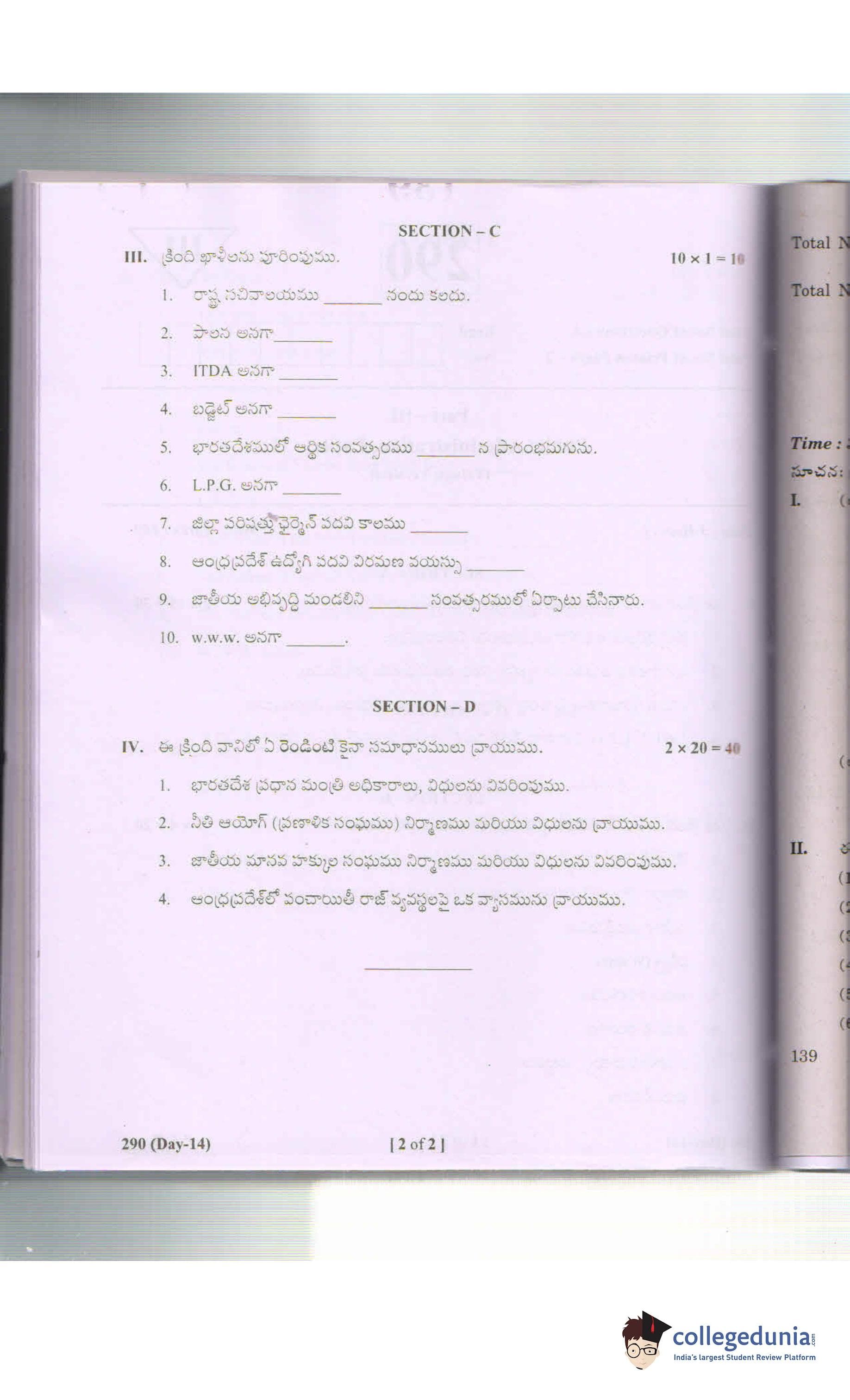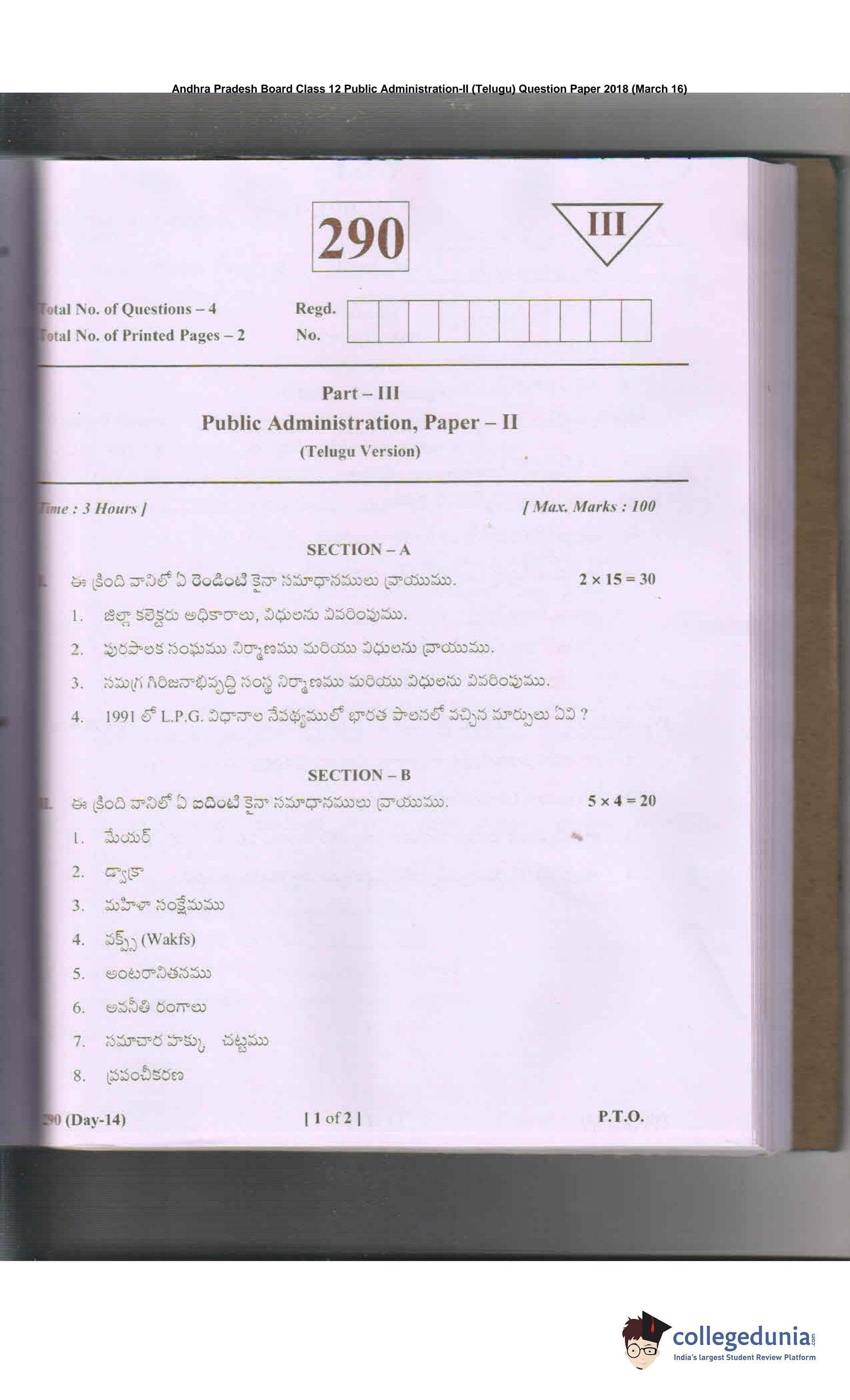 AP Intermediate 2nd year Public Administration (Telugu) Question Paper 2018 with Answer Key (March 16)