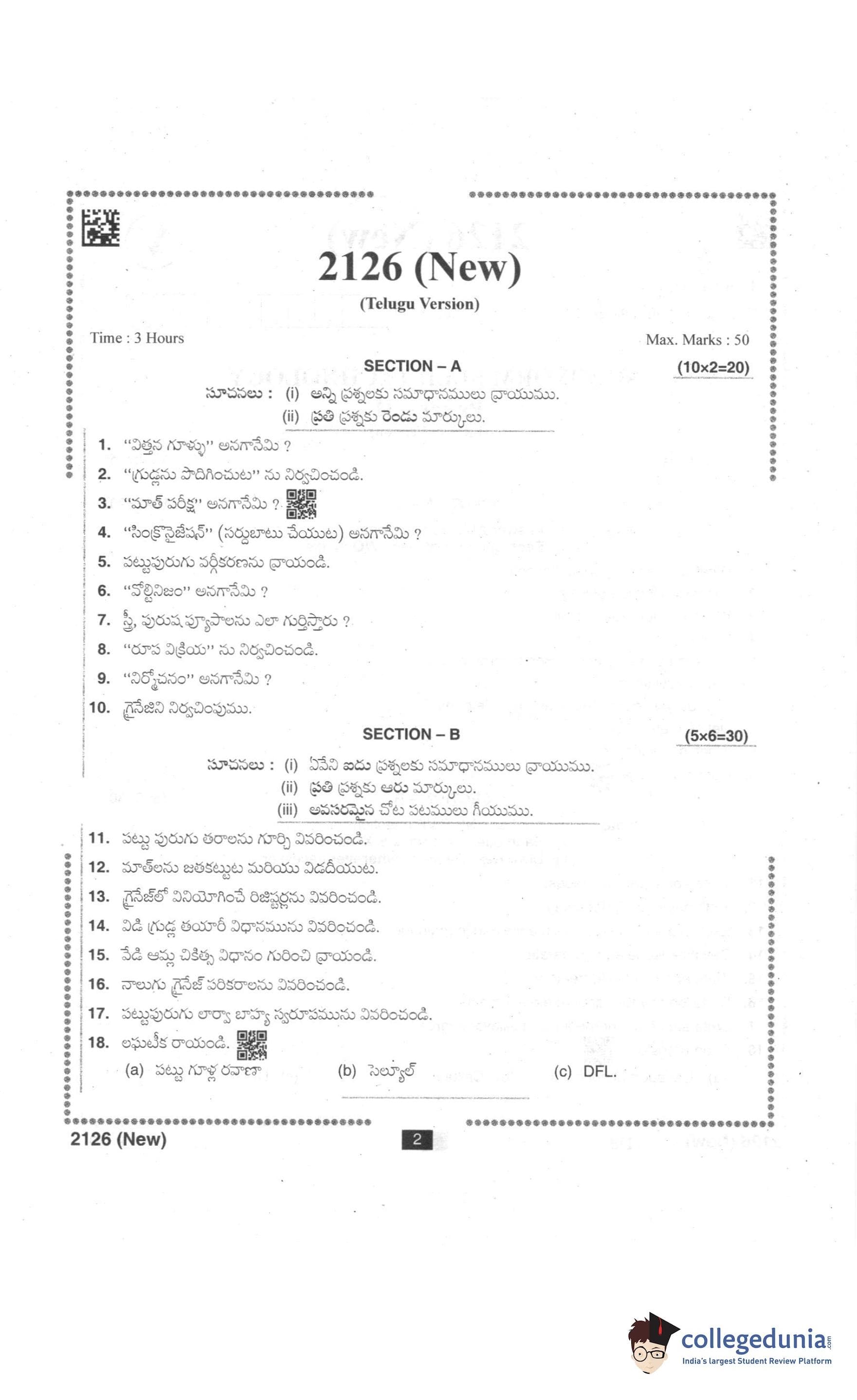 AP Intermediate 2nd year Silkworm Seed Technology (New) Supplementary Question Paper 2021 with Answer Key is available for download. The exam was conducted by the Andhra Pradesh Board of Intermediate Education (APBIE). The medium of paper was English and Telugu. The question paper comprised a total of 18 questions divided among 2 sections.