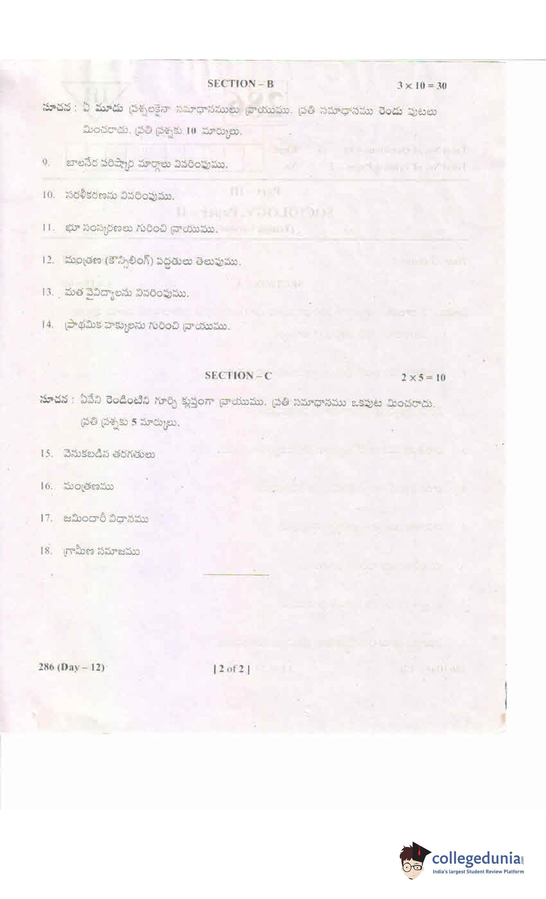 AP Intermediate 2nd year Sociology (Telugu) 286 Supplementary Question Paper 2019 (May 19)