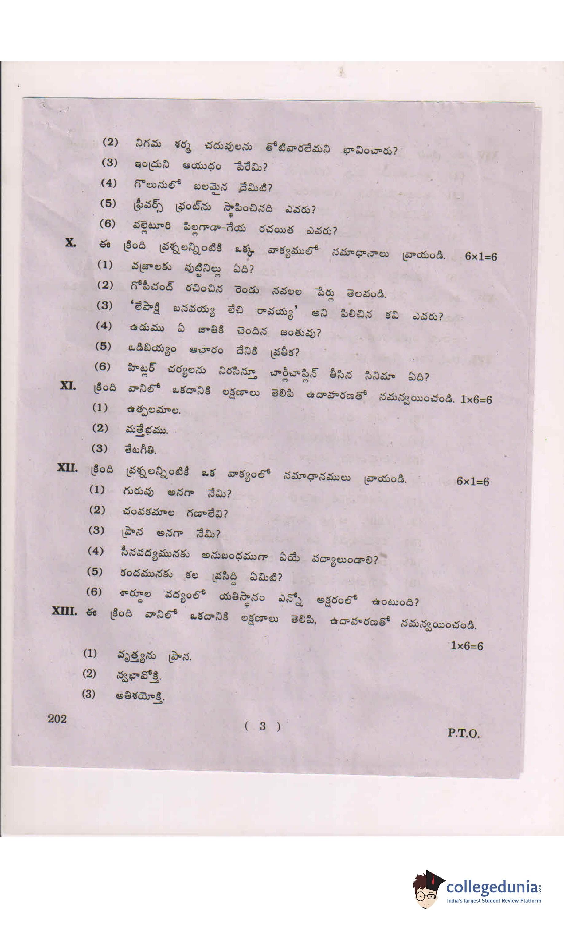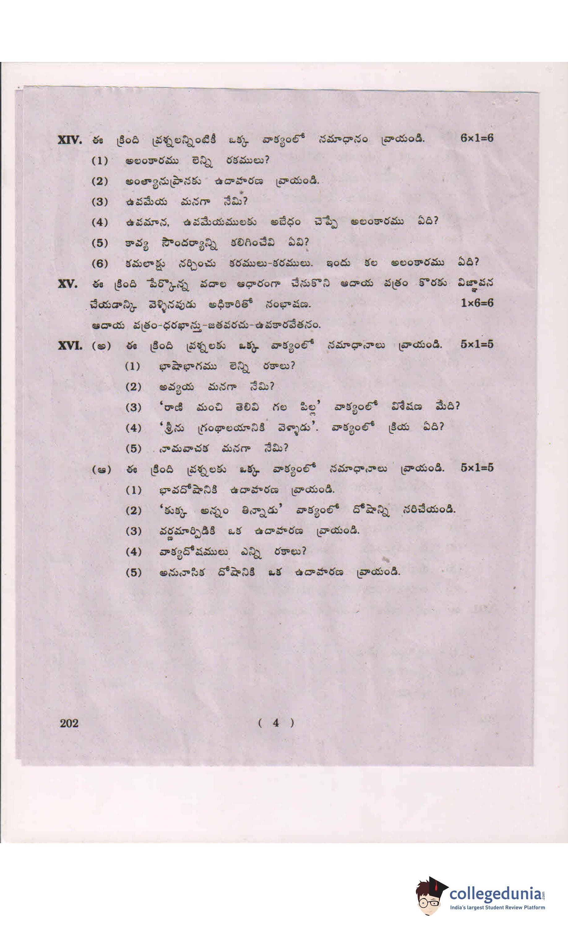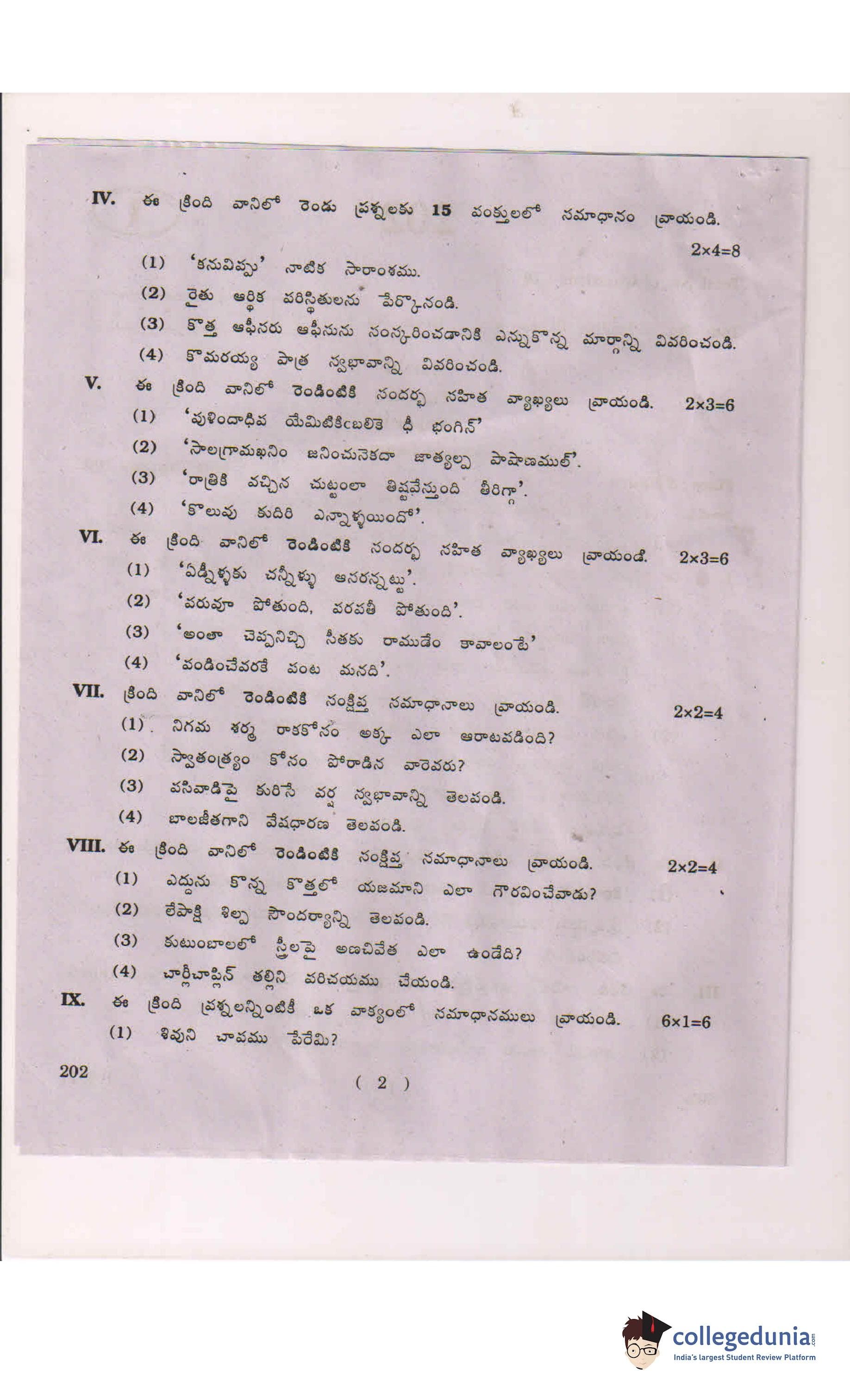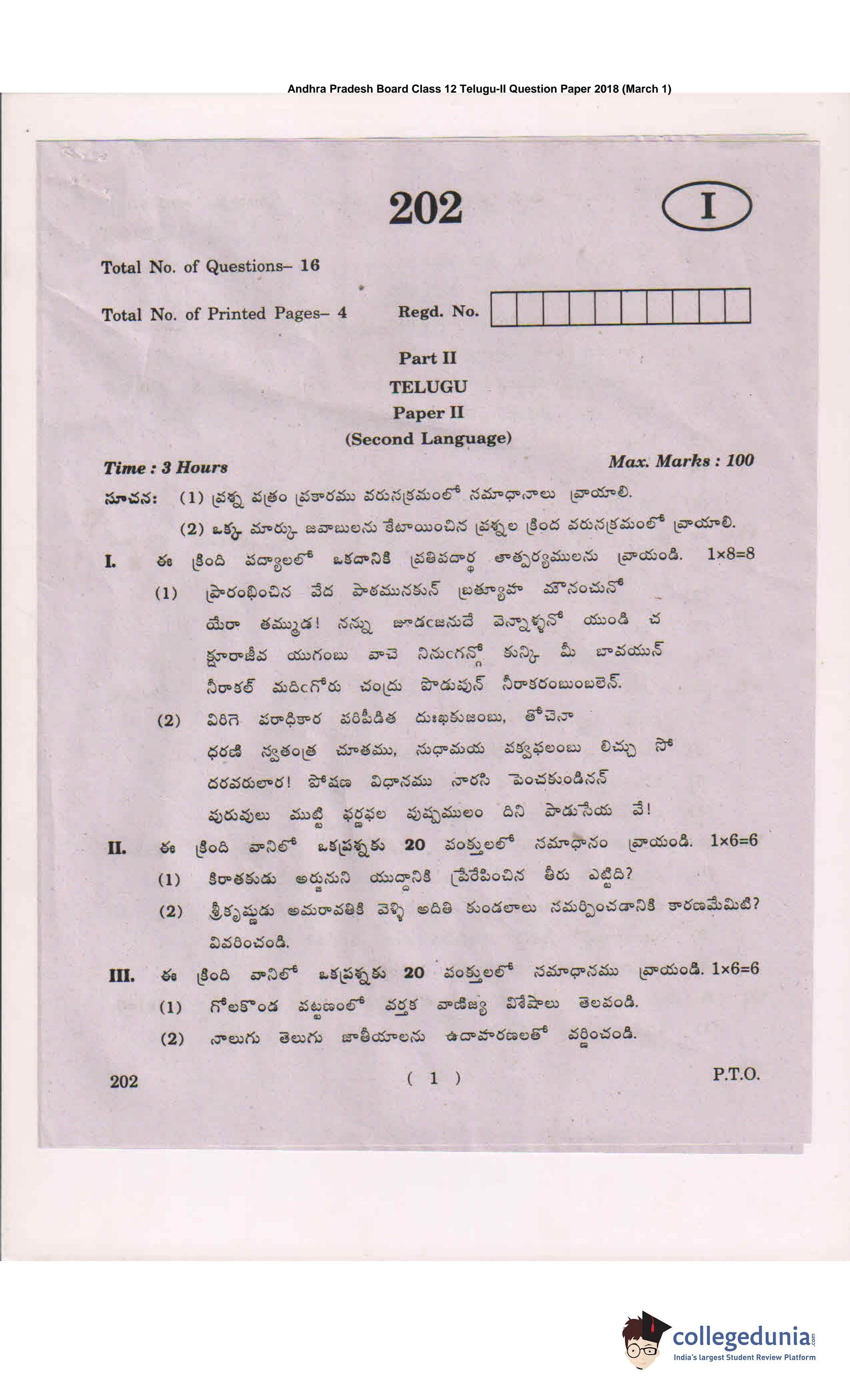 AP Intermediate 2nd year Telugu Question Paper 2018 with Answer Key (March 1)