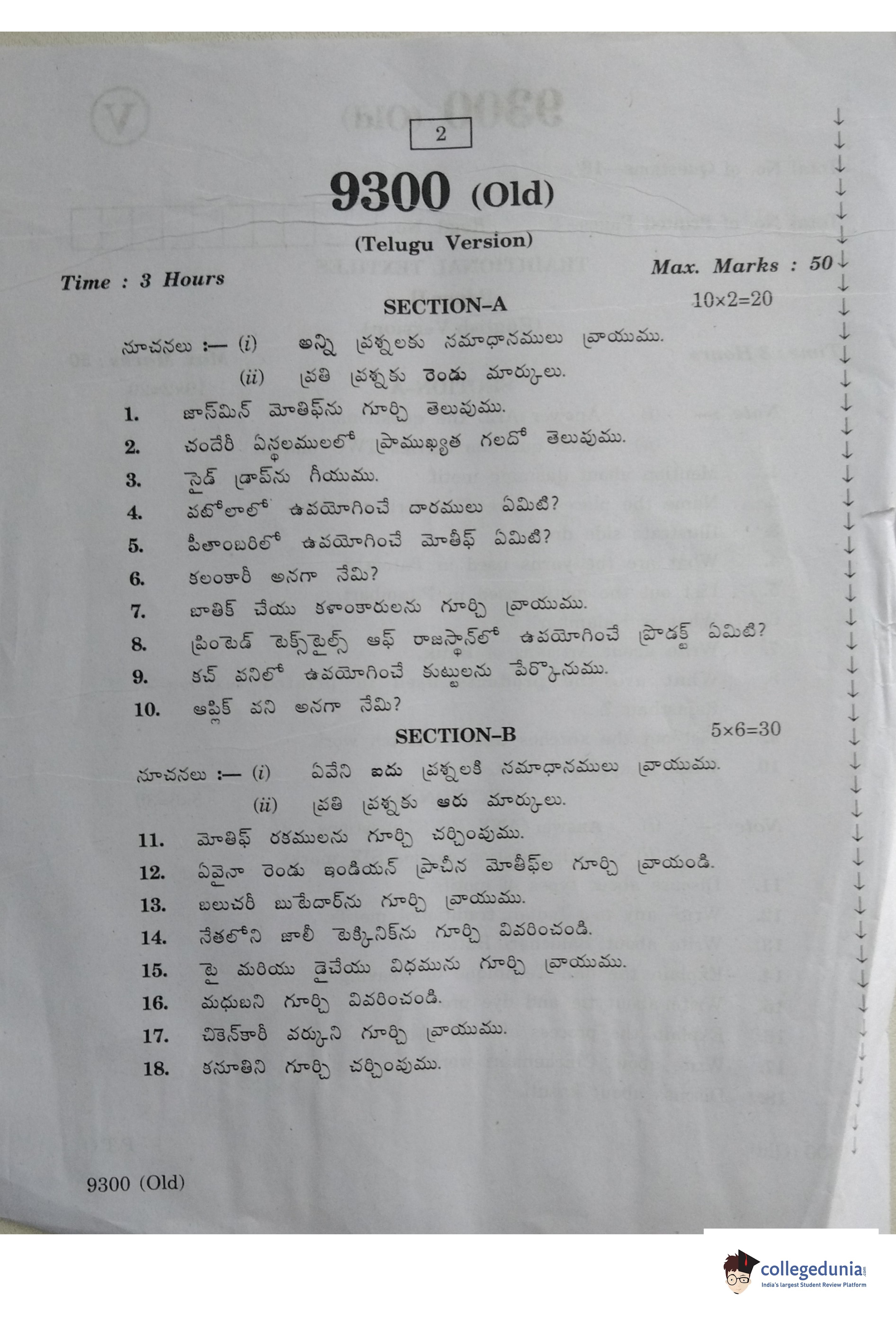 AP Intermediate 2nd year Traditional Textiles (Old) Question Paper 2020 with Answer Key is available for download. The exam was conducted by the Andhra Pradesh Board of Intermediate Education (APBIE) on March 13, 2020 in the Morning Session 9 AM to 12 PM. The medium of paper was English and Telugu.The question paper comprised a total of 18 questions divided among 2 sections.