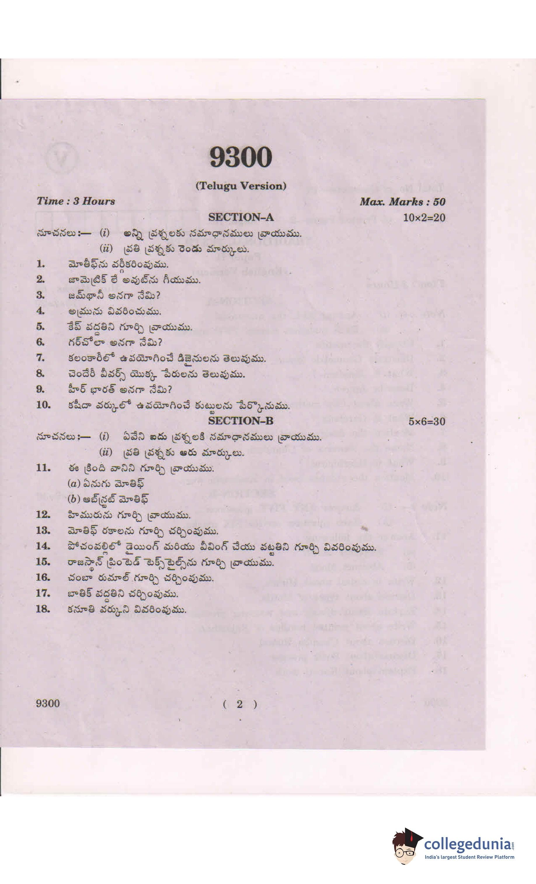 AP Intermediate 2nd year Traditional Textiles Question Paper 2019 with Answer Key