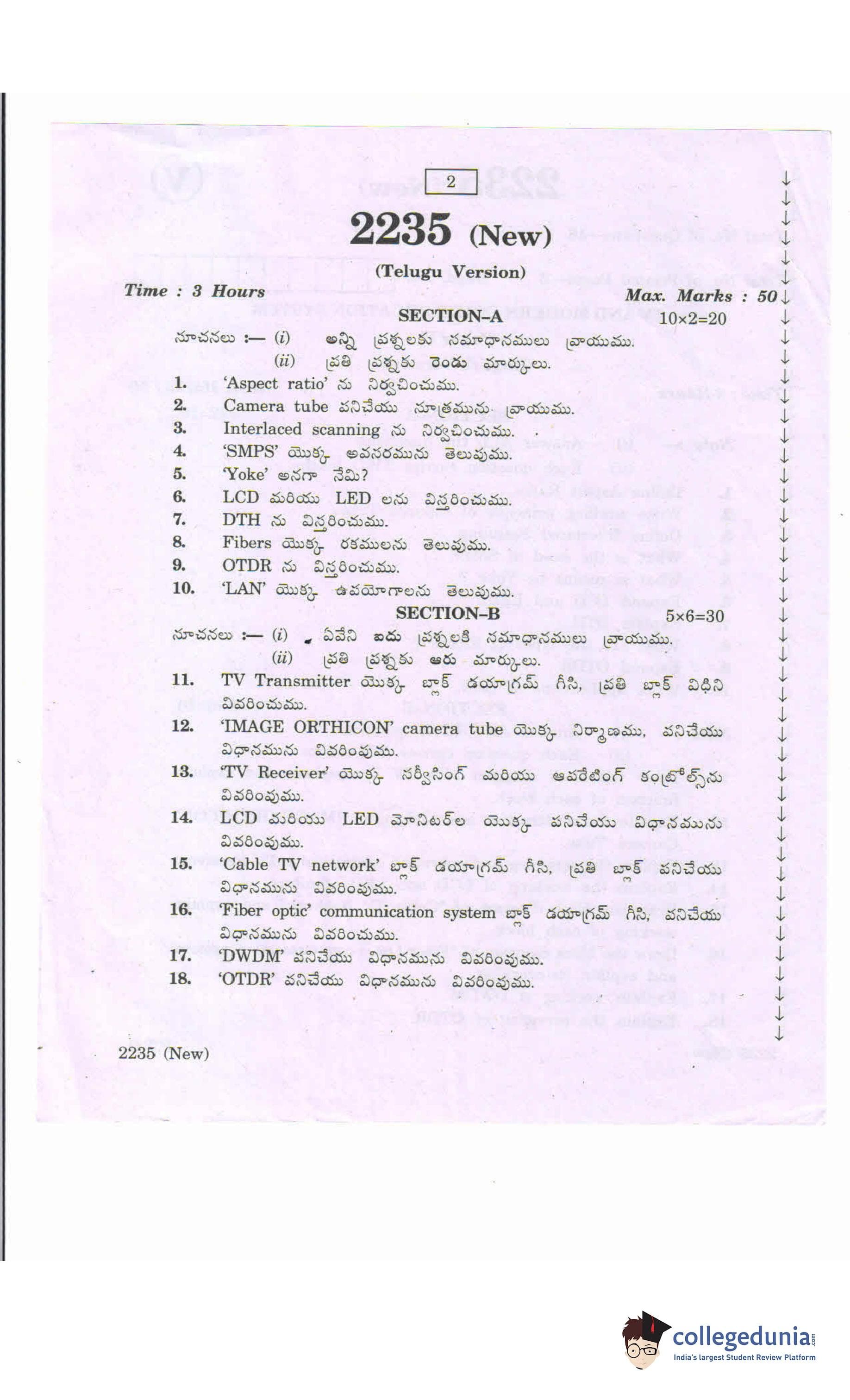 AP Intermediate 2nd year TV and Modern Communication Systems (New) Question Paper 2020 with Answer Key (March 13)