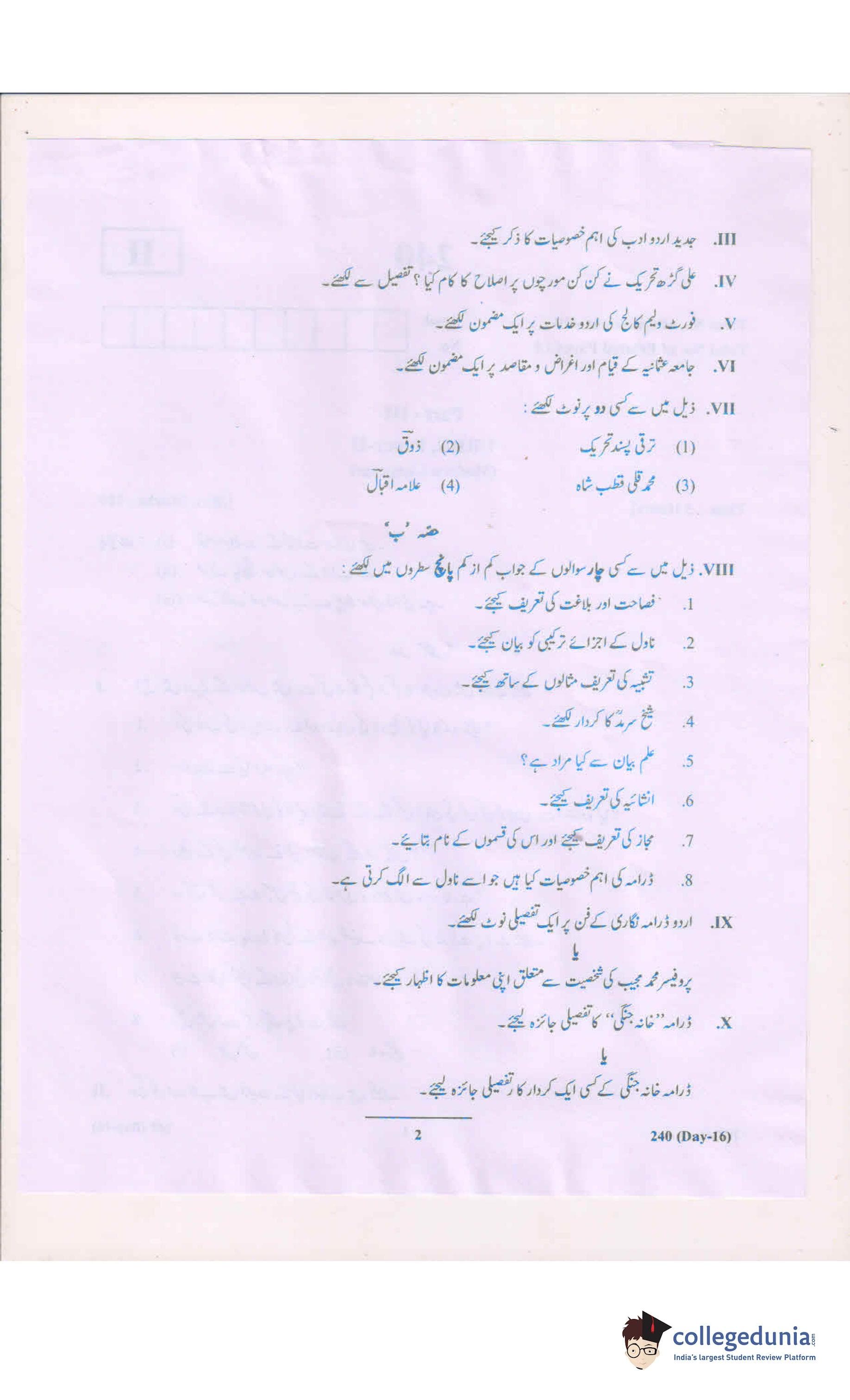 AP Intermediate 2nd year Urdu Modern Language Question Paper 2018 with Answer Key (March 19)