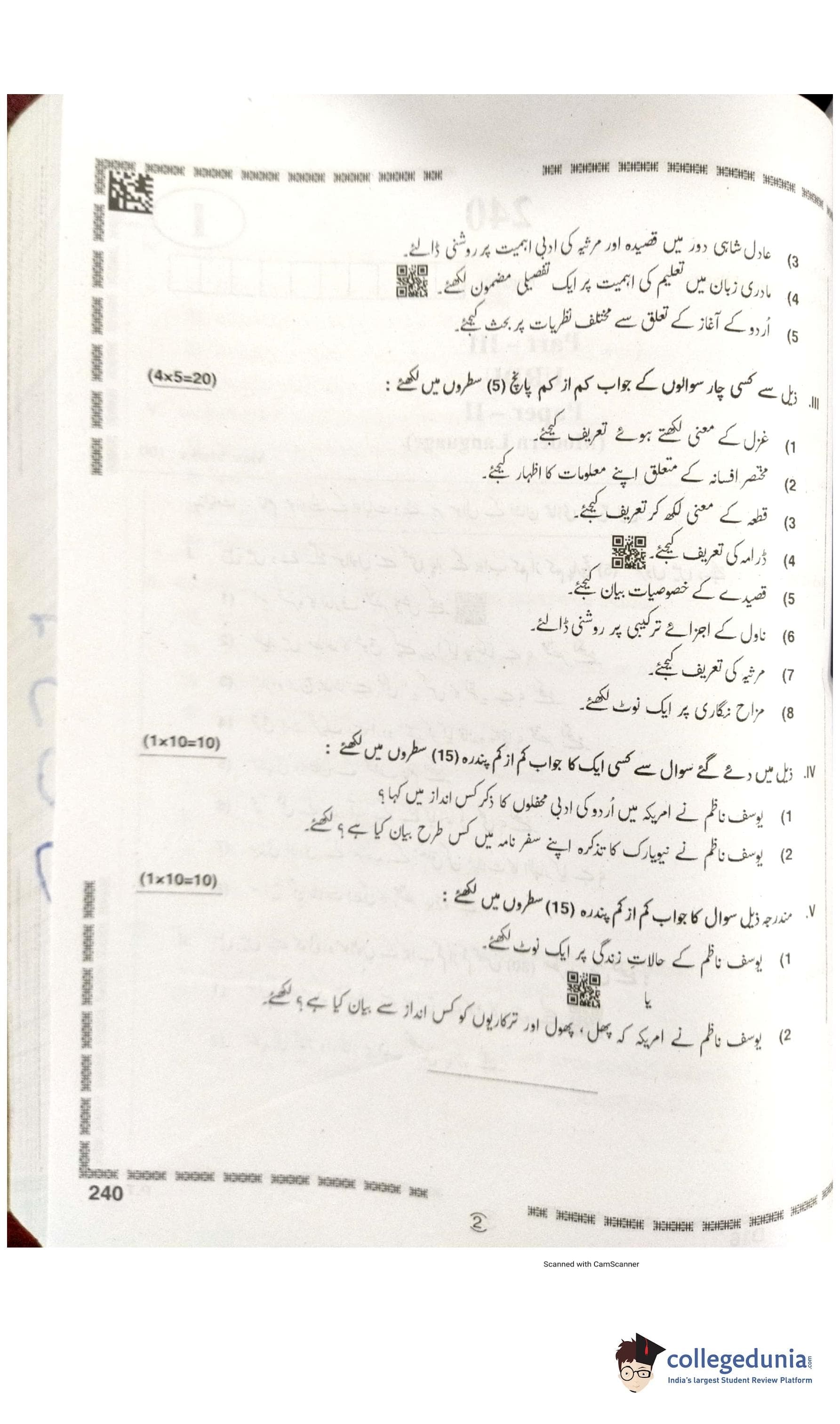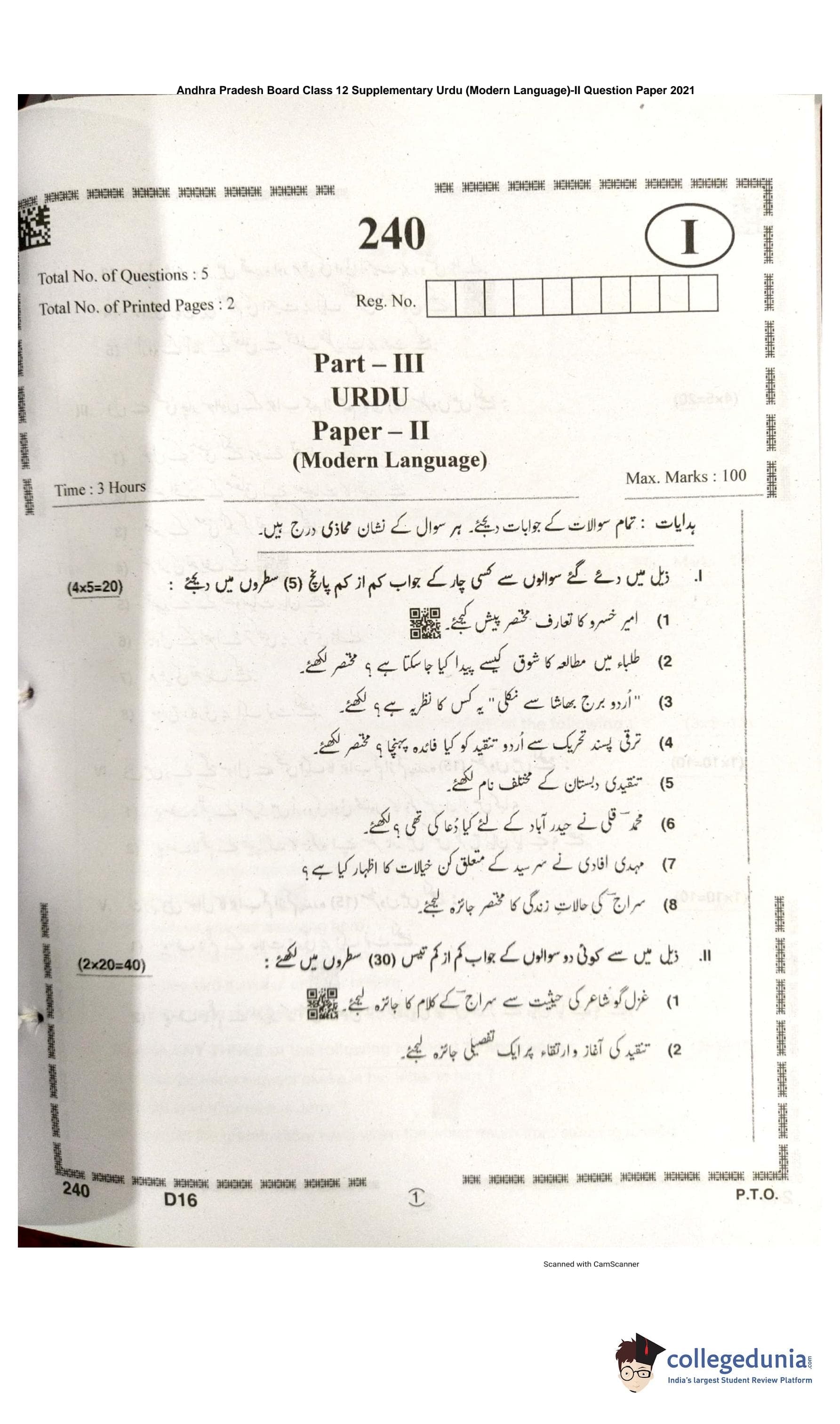 AP Intermediate 2nd year Urdu (Modern Language) I Supplementary Question Paper 2021