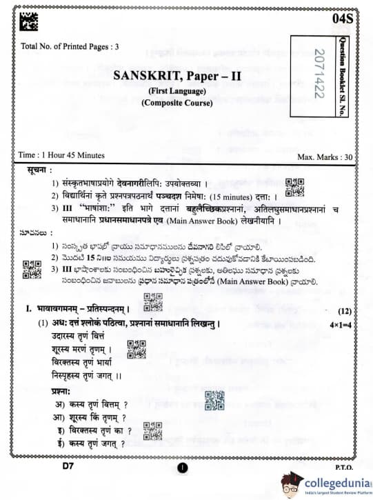 | BSEAP 2023 Sanskrit Question Paper with Solutions | Check Solutions |