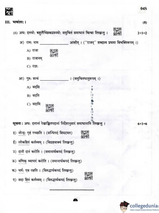 (6) अधः दत्तयोः बहुविकल्पप्रश्नयोः, समुचितं समाधानं चित्वा लिखन्तु।