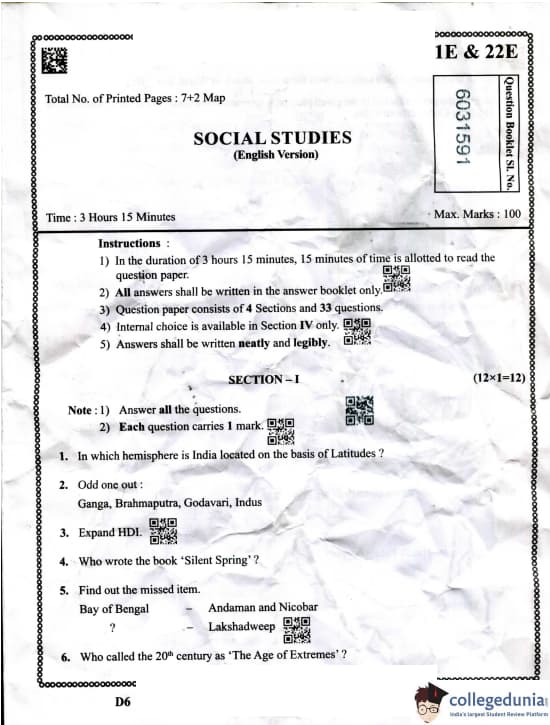 BSEAP Social Studies Question Paper 2023 with Solutions