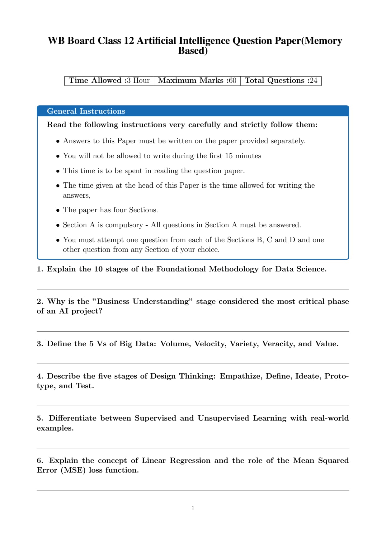 | WB Board 2026 Class 12 Artificial Intelligence Question Paper with Solution PDF | Download PDF | Check Solutions |