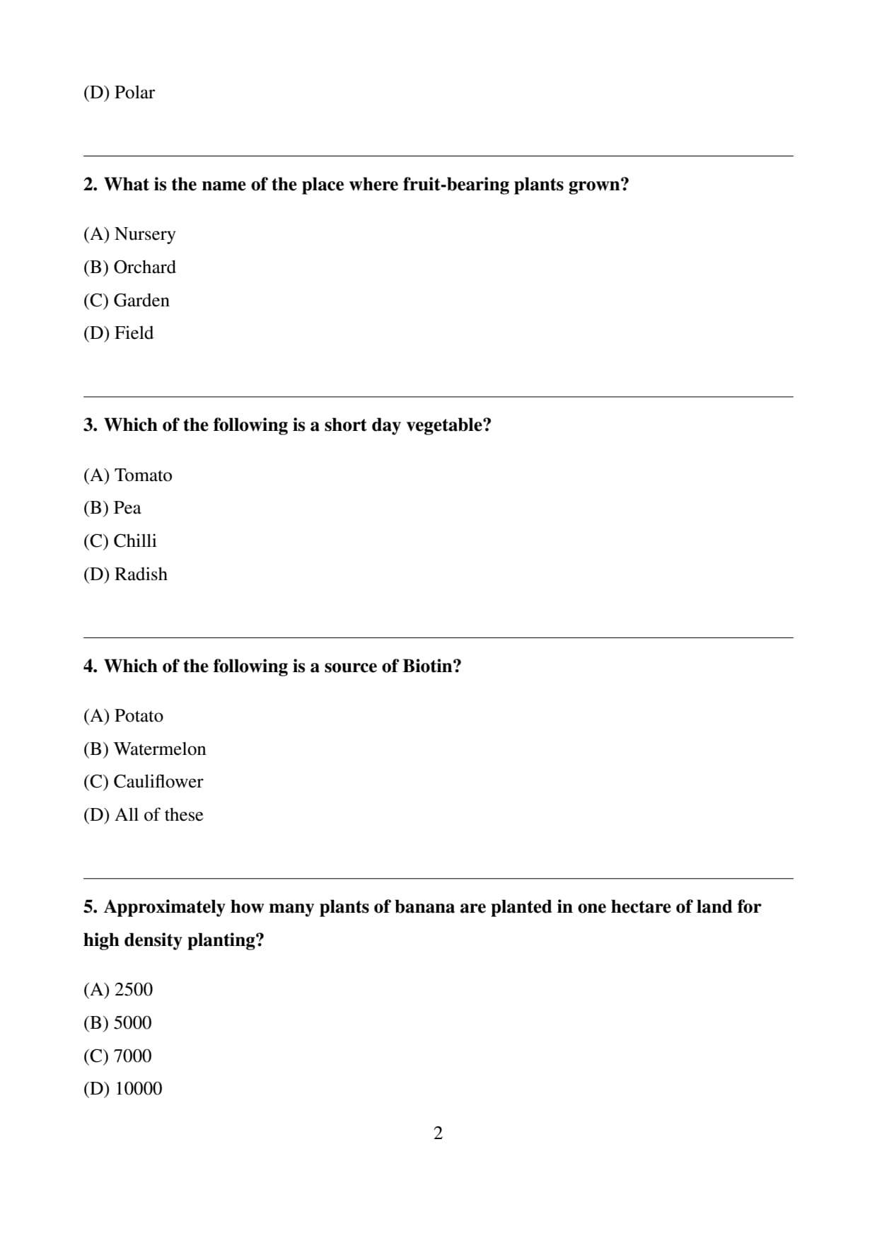Final Answer: \[ \boxed{(B) \, 5000} \] Quick Tip: High Density Planting not only increases yield but also helps in weed control due to the dense canopy, though it requires more intensive management of water and nutrients.