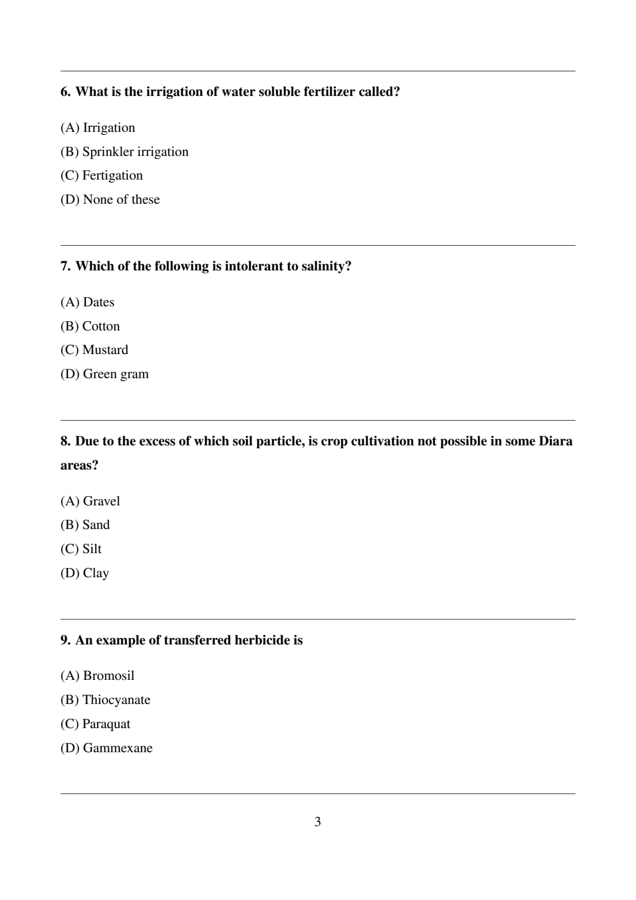 Final Answer: \[ \boxed{(B) \, Sand} \] Quick Tip: Diara land is also known as "Riverine land." Farmers in these areas often practice "Diara Cultivation" specifically for cucurbits (like watermelons and cucumbers) because their long taproots can reach the lower water table beneath the sandy surface.