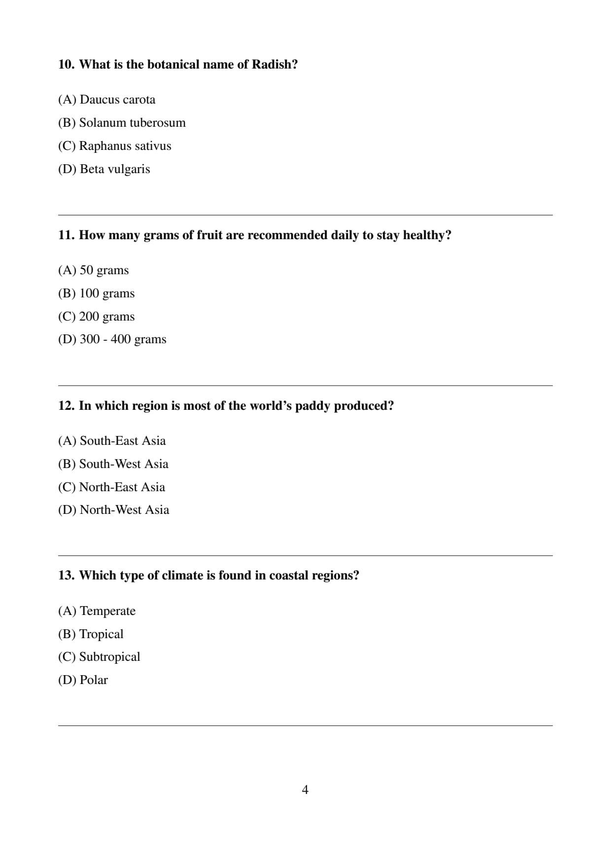 Final Answer: \[ \boxed{(C) \, \textit{Raphanus sativus} \] Quick Tip: Botanical names are always written in italics (or underlined if handwritten). The first word (Genus) is capitalized, and the second word (species) starts with a lowercase letter.