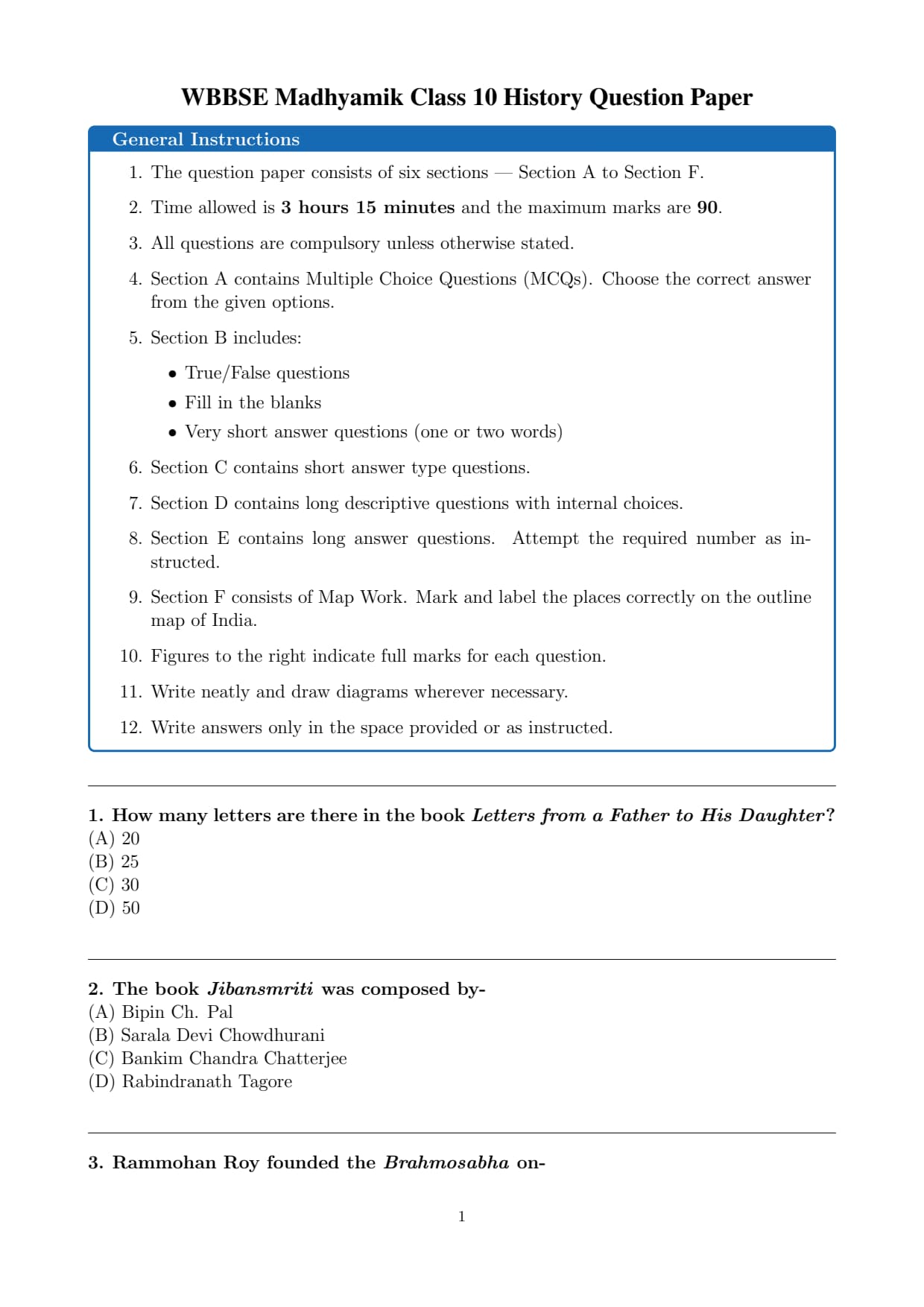 - WBBSE Madhyamik 2026 Geography Question Paper