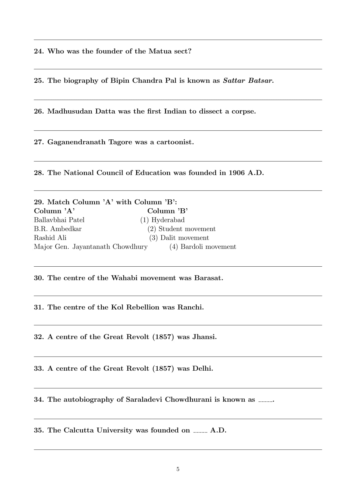 Option (C) corresponds to Umesh Ch. Datta. Quick Tip: \textit{Bamabodhini Patrika was edited by Umesh Chandra Datta and was important for promoting women’s education during the Bengal Renaissance.