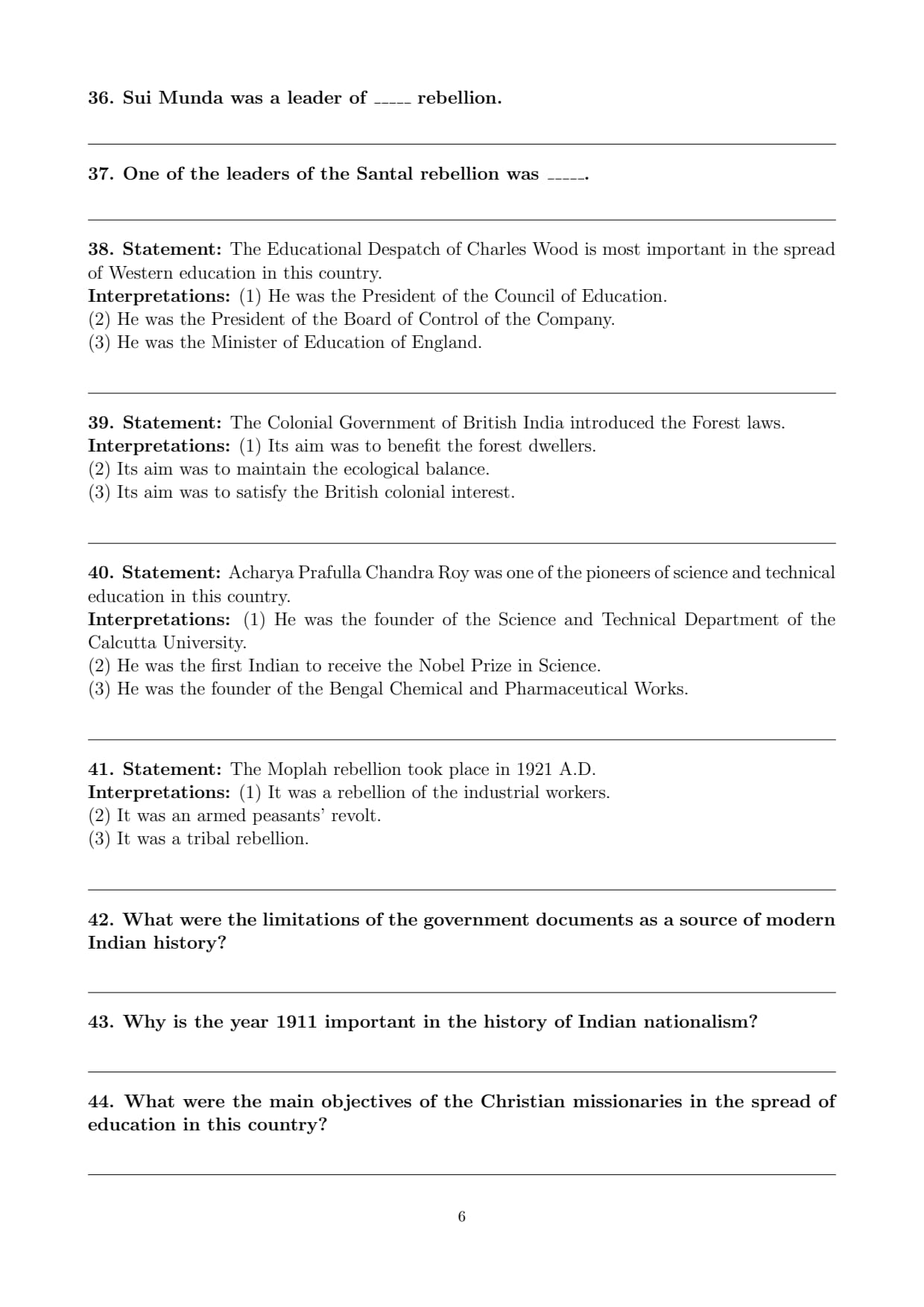 WBBSE Madhyamik 2026 History Question Paper with Solutions (6 Feb,2026)