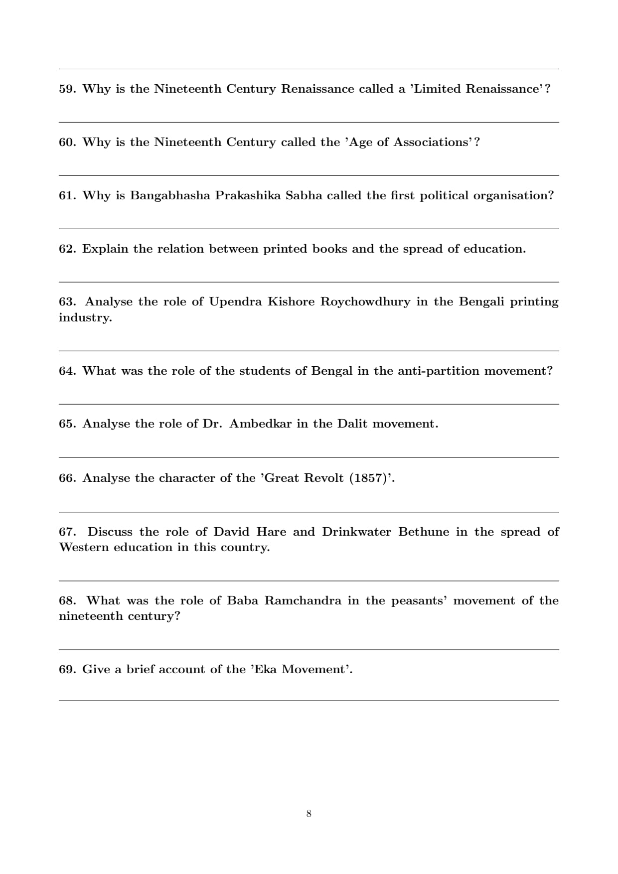 The participation of students transformed the Anti-Partition Movement into a vibrant mass movement and strengthened the foundation of Indian nationalism. Quick Tip: Students were the backbone of the Anti-Partition Movement through protests, Swadeshi, and nationalist education.