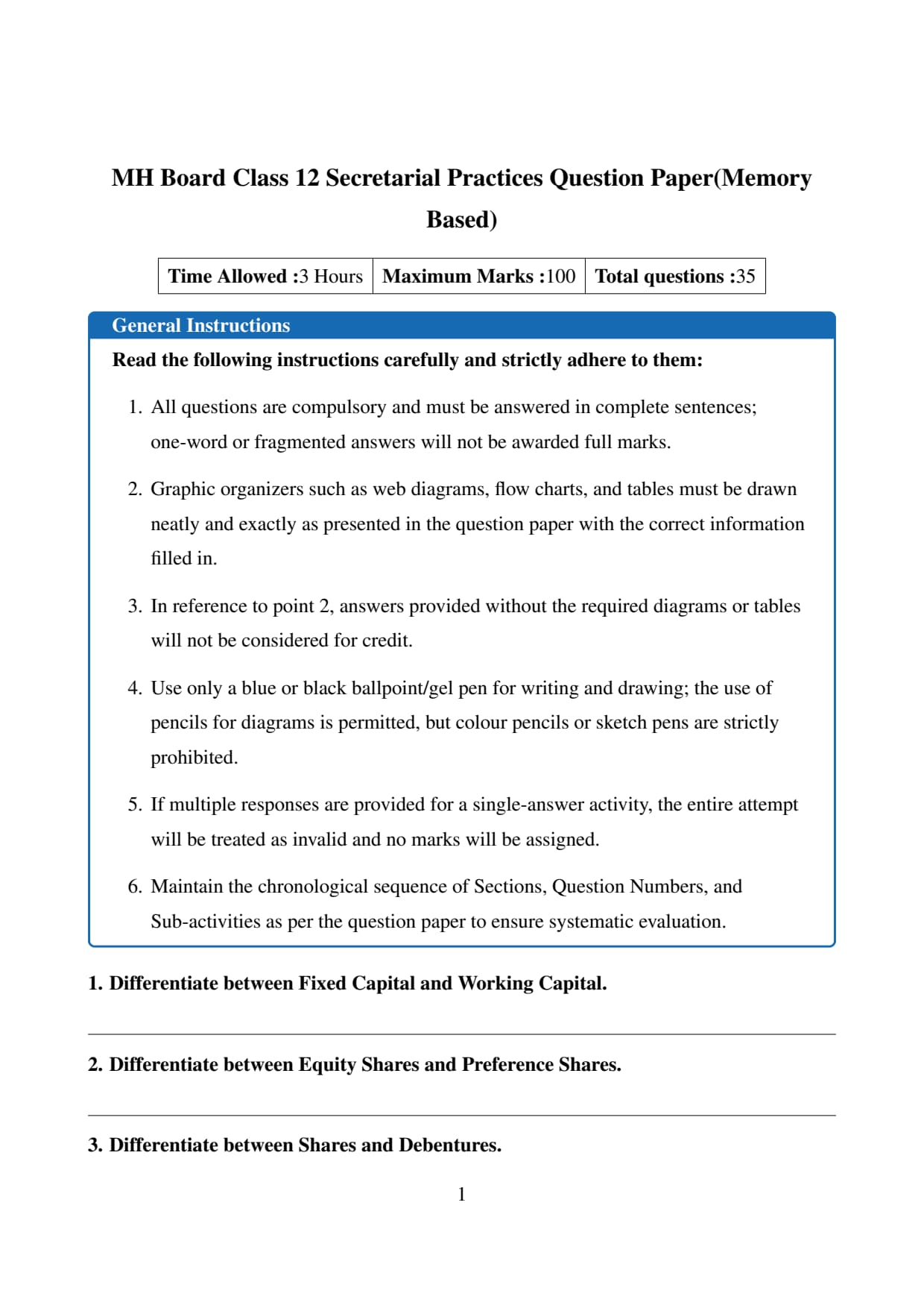 Maharashtra Board 2026 Class 12 Secretarial Practice (Commerce) (52) of Question Paper with Solution PDF – Memory Based