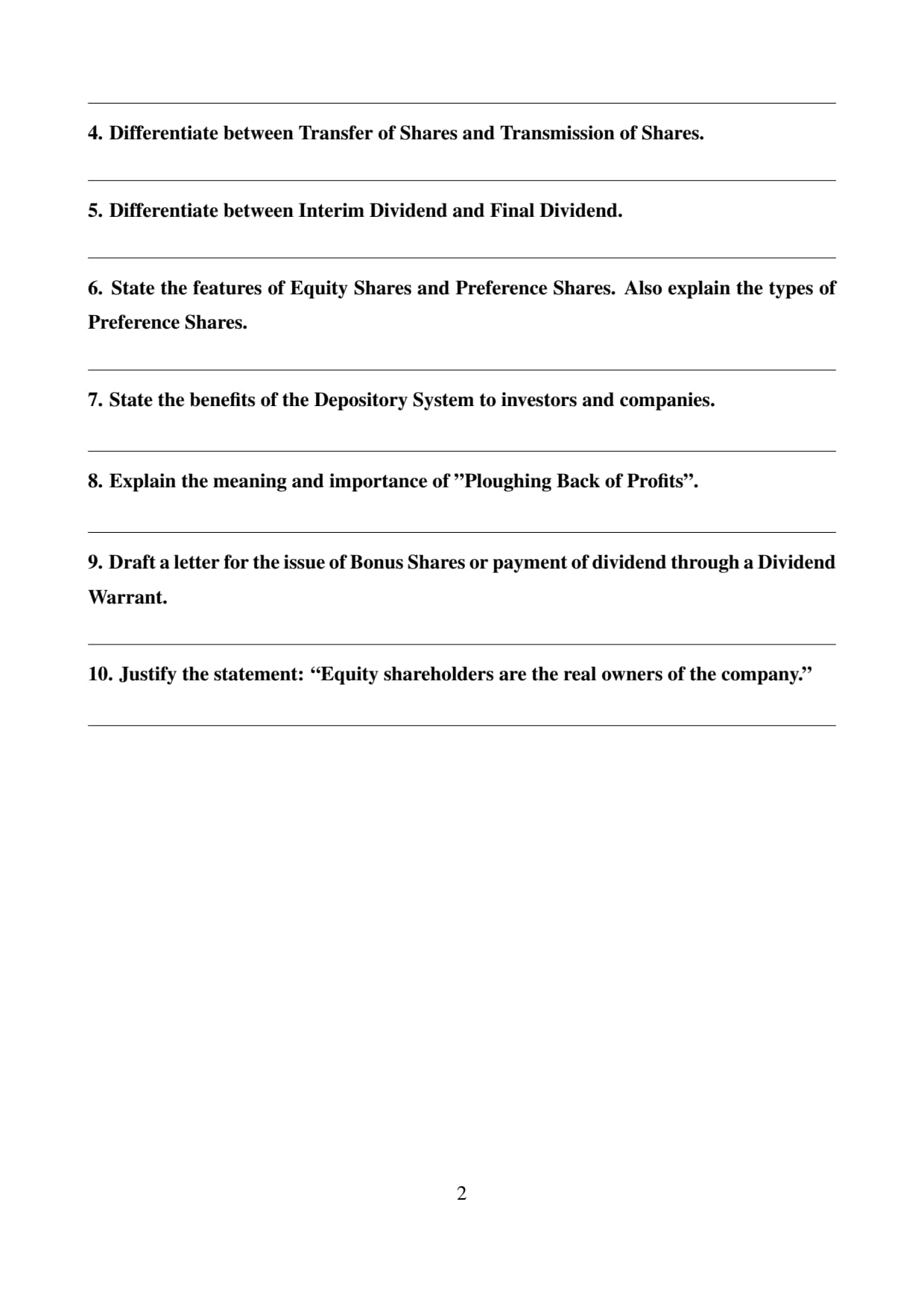(Company Secretary) Quick Tip: Bonus shares = Issued from reserves, no cash outflow. Dividend warrant = Written instrument for dividend payment.