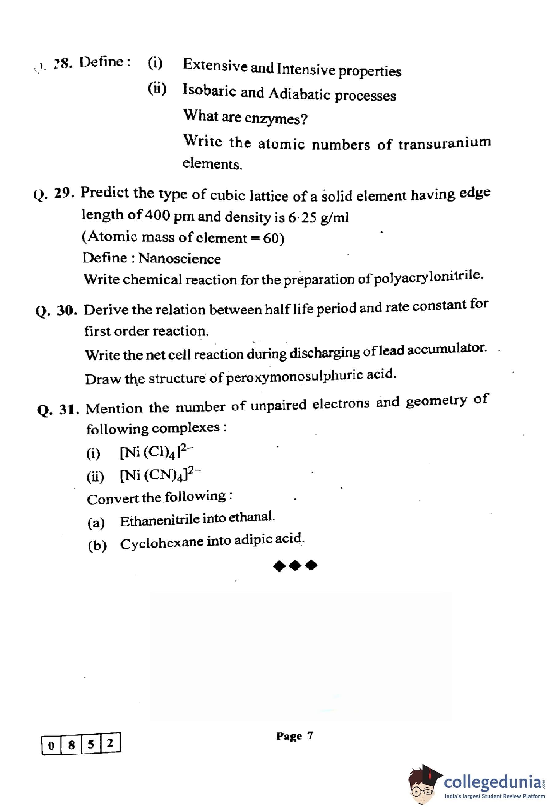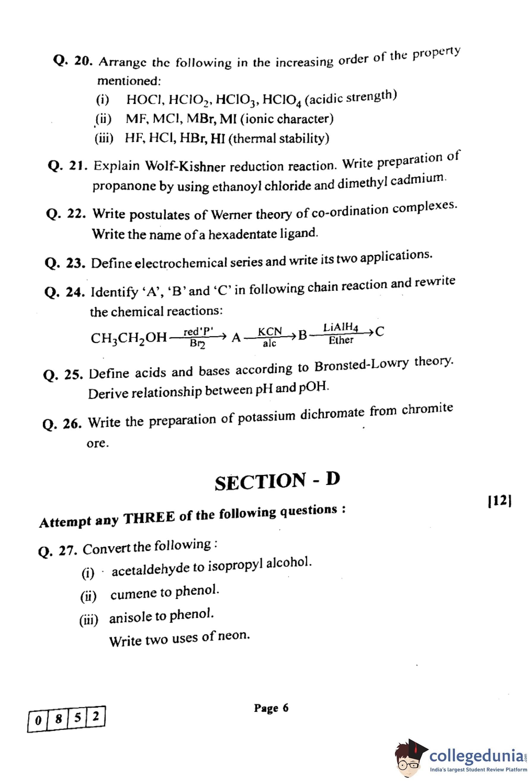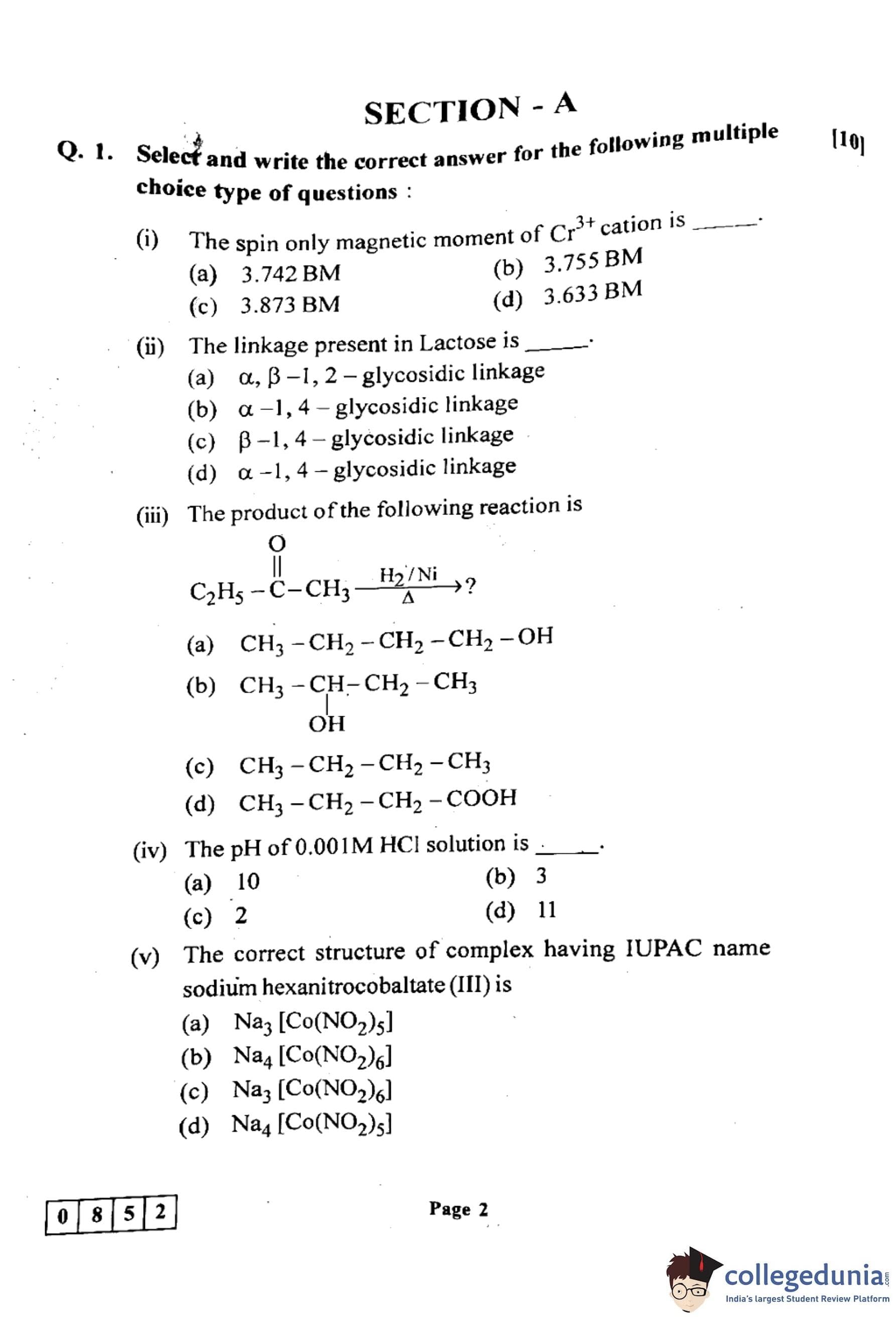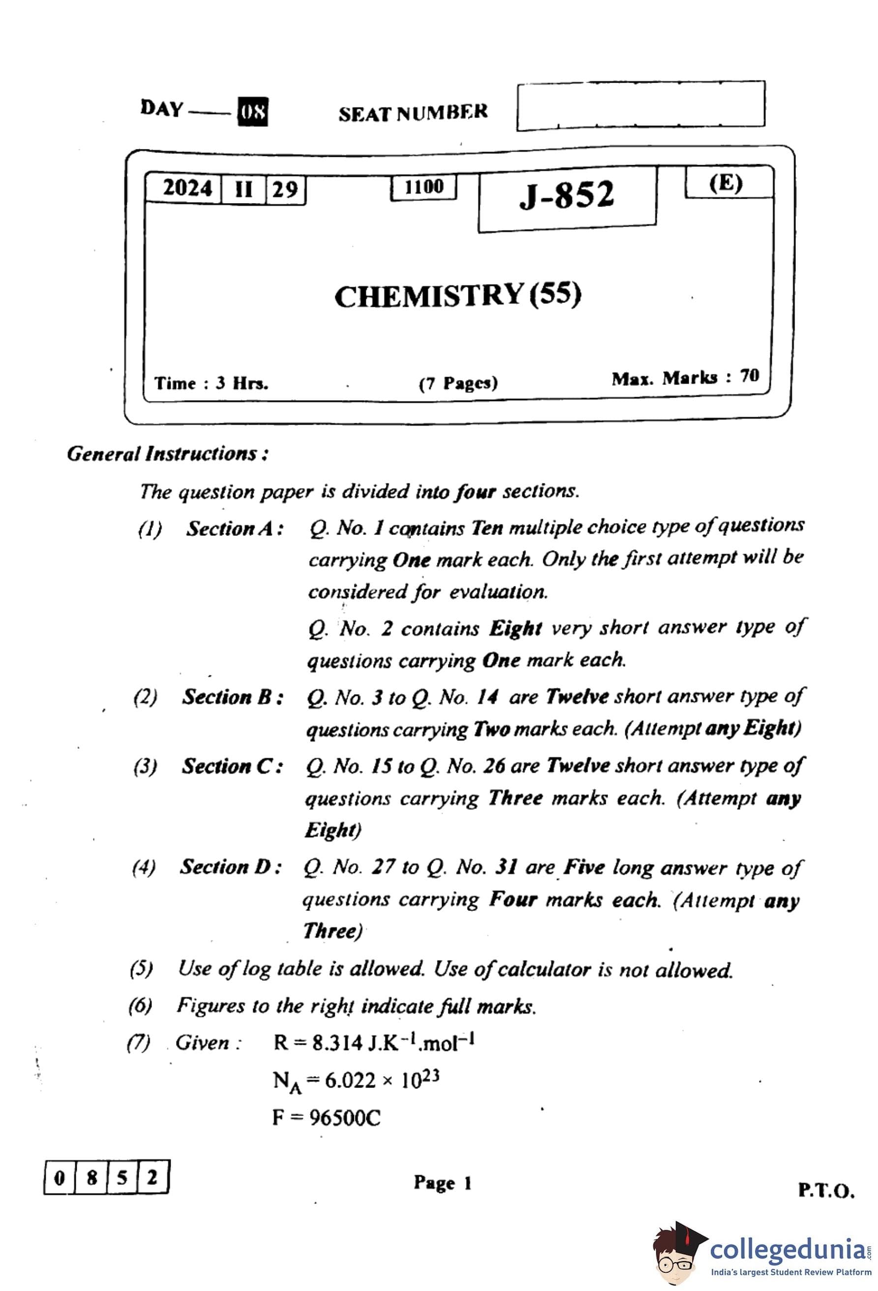 Candidates can use the link below to download the Maharashtra Board Class 12th Chemistry (55-J-852) Question Paper with detailed solutions.