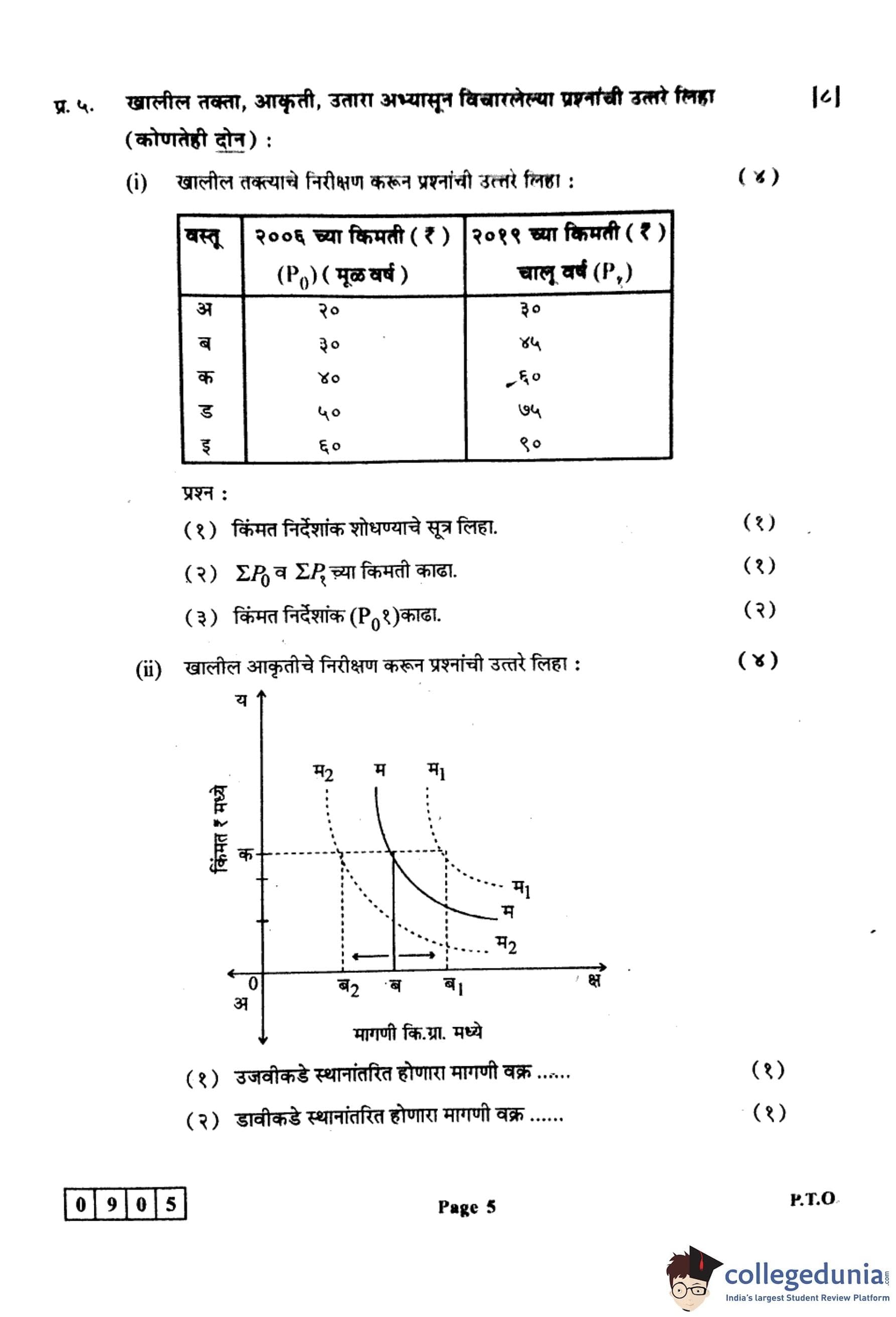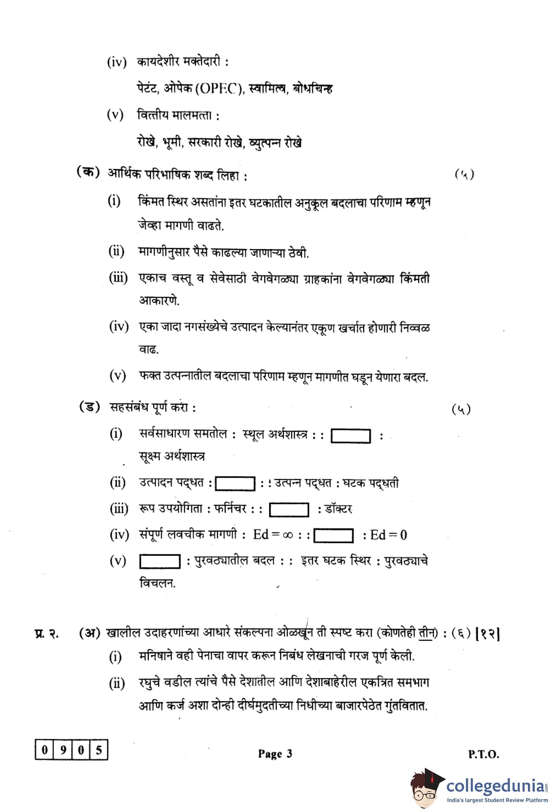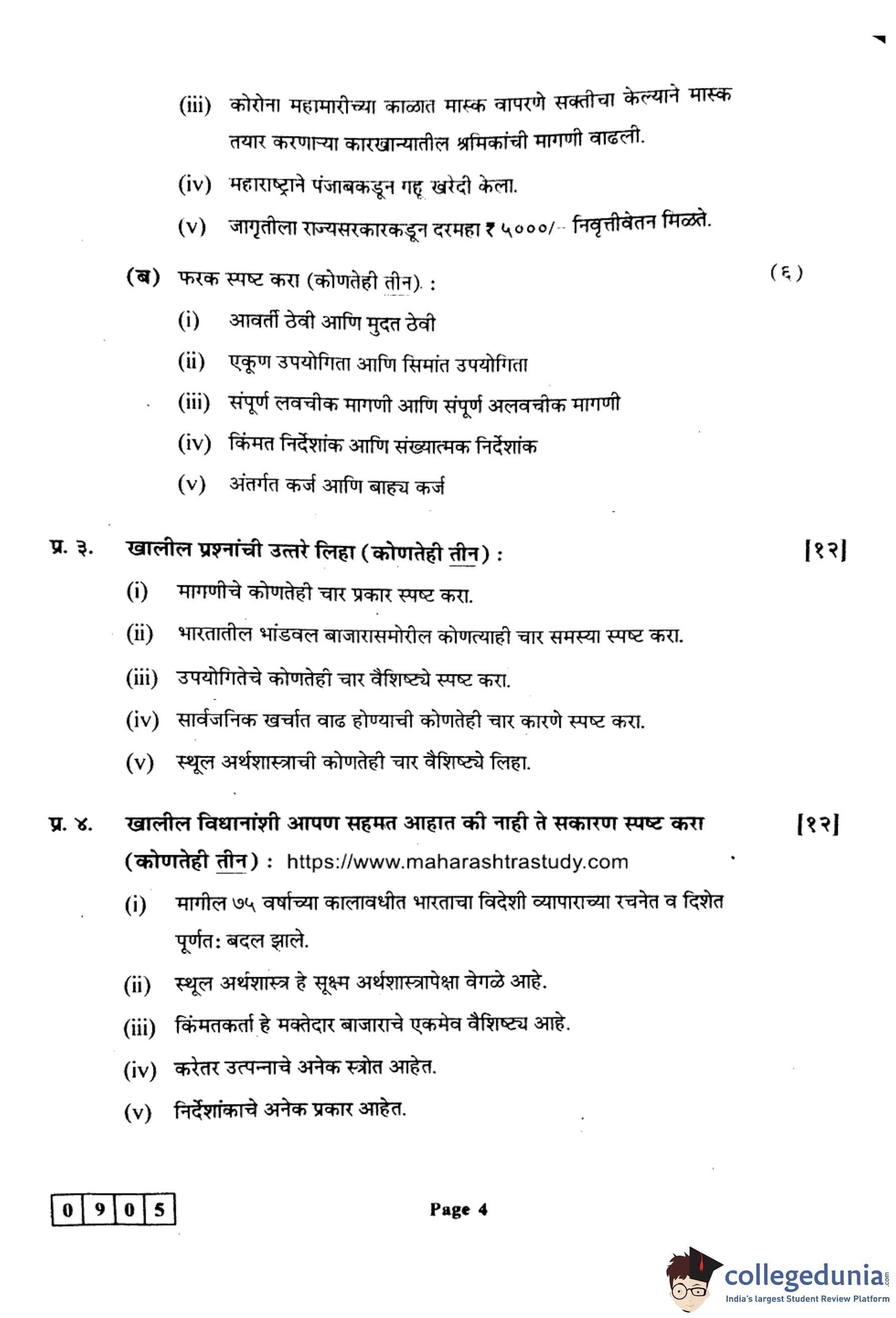 महाराष्ट्र बोर्ड वर्ग 12 अर्थशास्त्र 2024 कोड: 905 (J) प्रश्नपत्रिका उत्तरांसह
