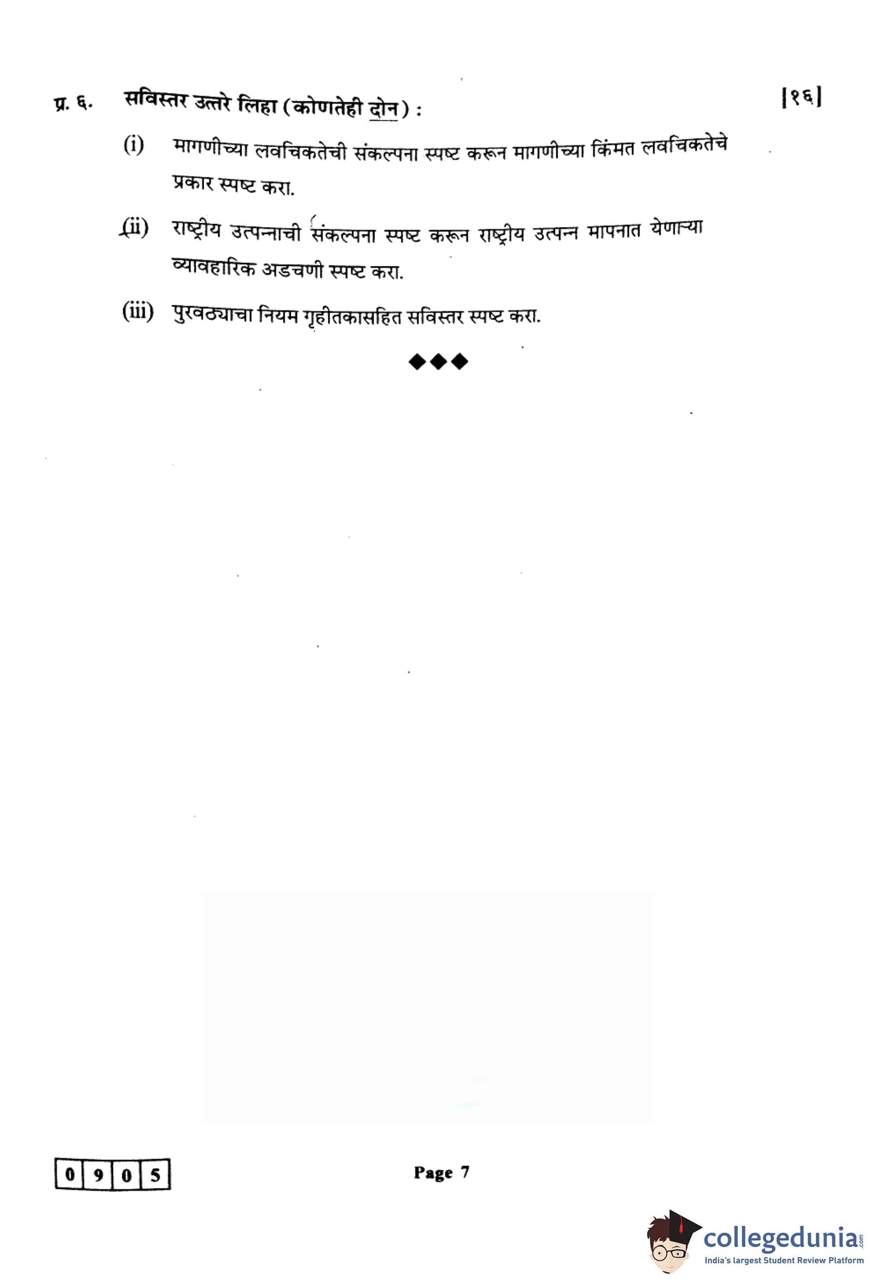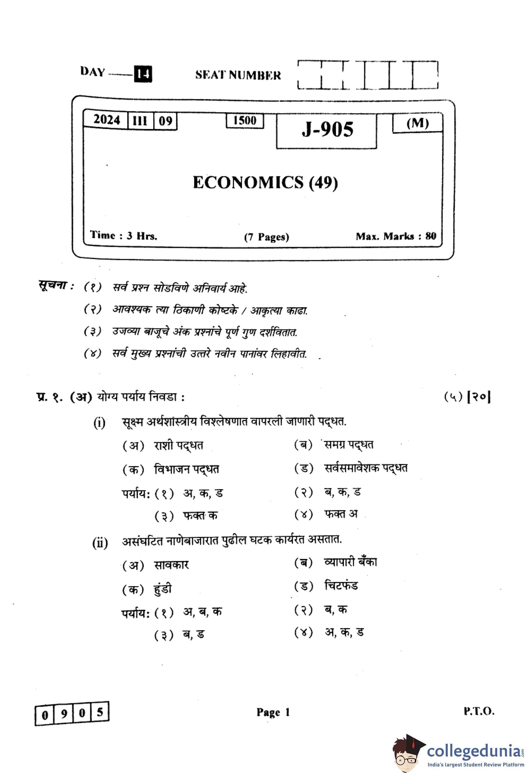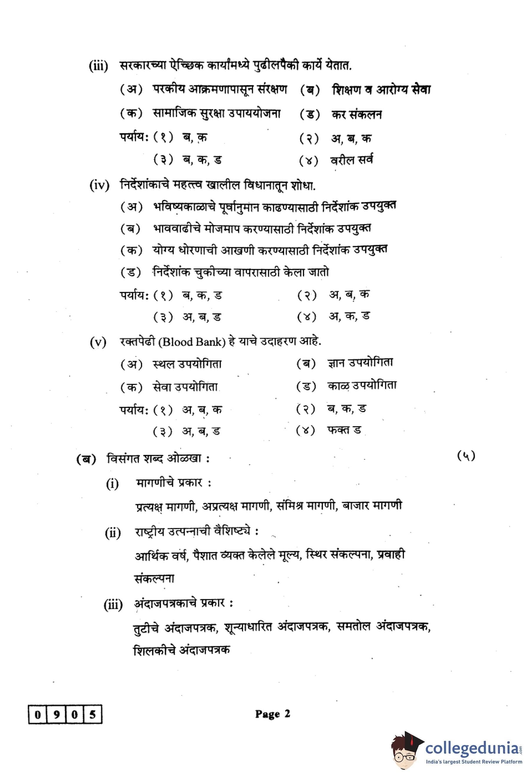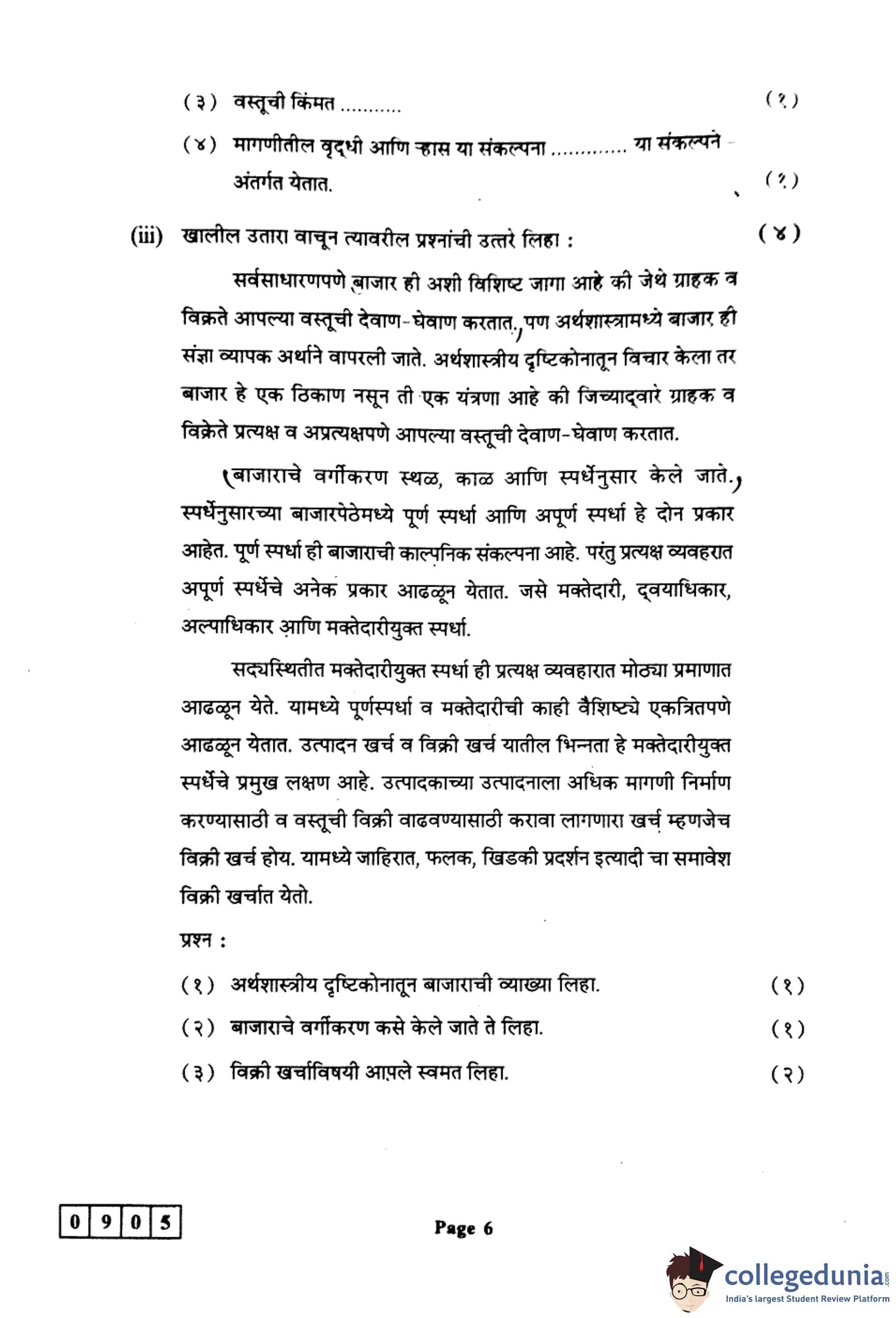 महाराष्ट्र बोर्ड वर्ग 12 अर्थशास्त्र 2024 कोड: 905 (J) प्रश्नपत्रिका उत्तरांसह