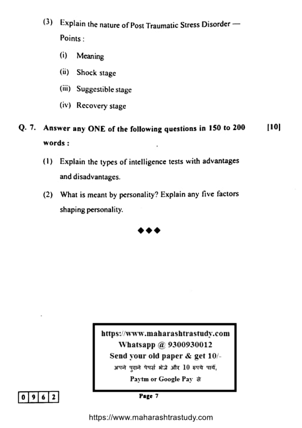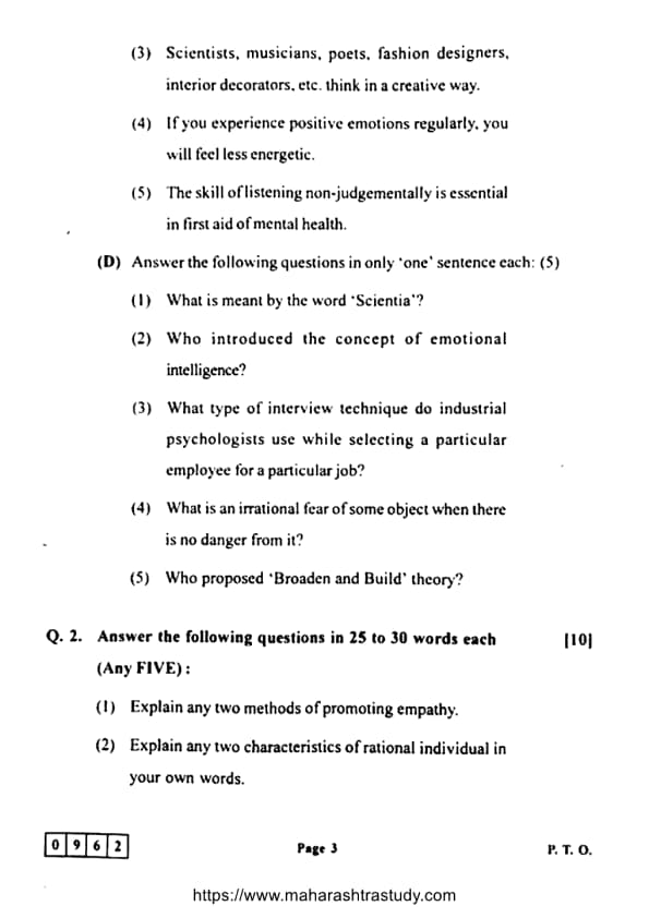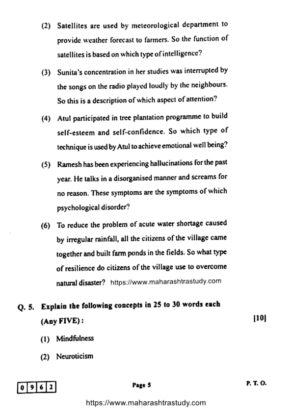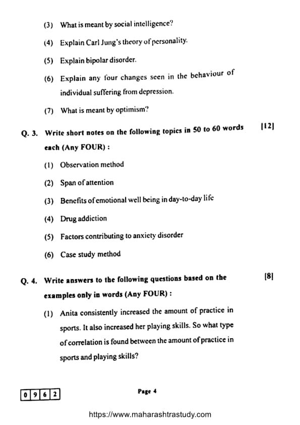 Candidates can use the link below to download the Maharashtra Board Class 12 Psychology (48-J-962) Question Paper with detailed solutions.