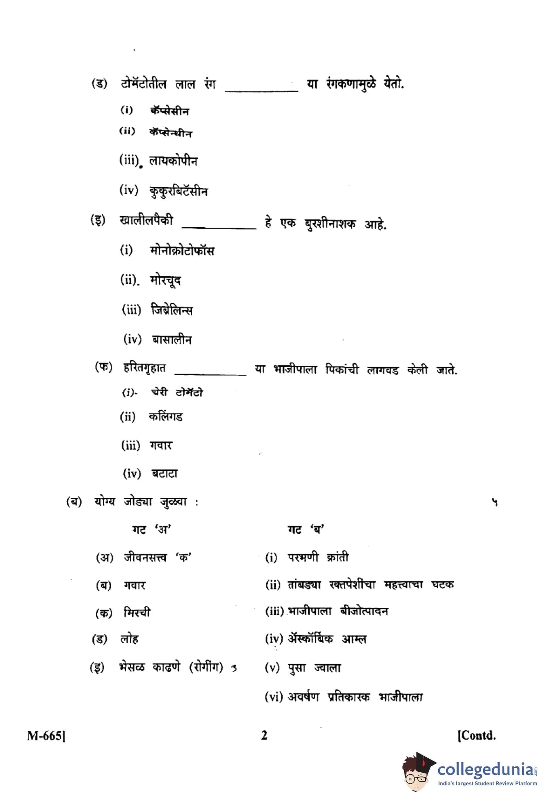 Maharashtra Board Class 12 Horticulture Vegetable Production (M-665) Question Paper 2024 with Answer Key