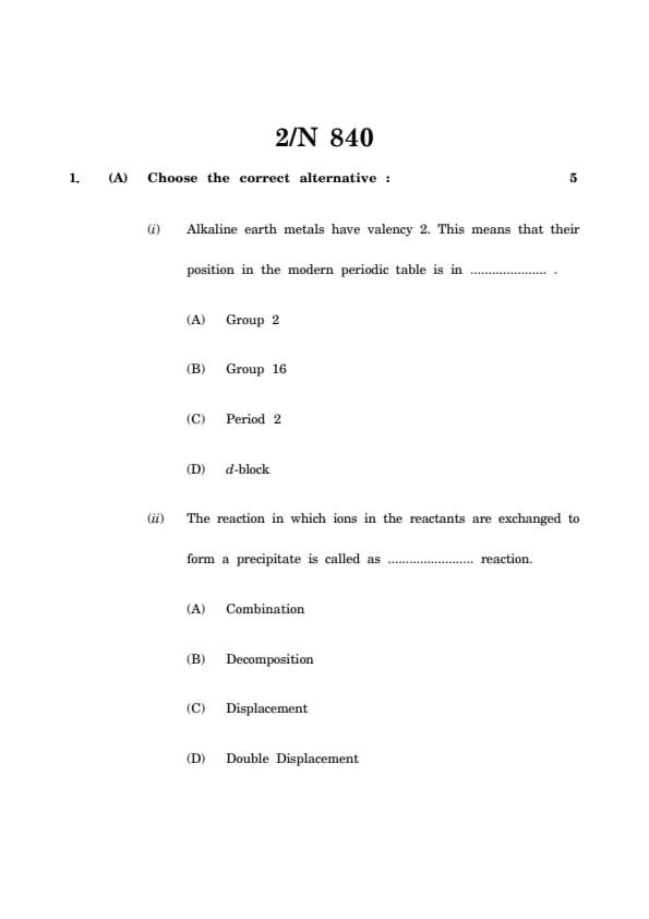 Maharashtra Board Class 10 Science and Technology Part-1 Question Paper 2025 (Code N 840) with Solutions