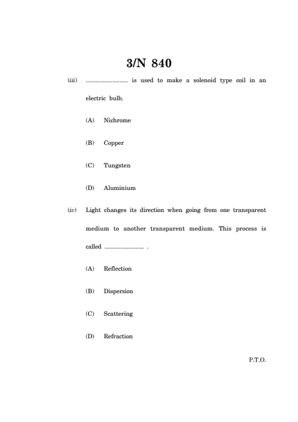 (iv) Light changes its direction when going from one transparent medium to another transparent medium. This process is called _______ .