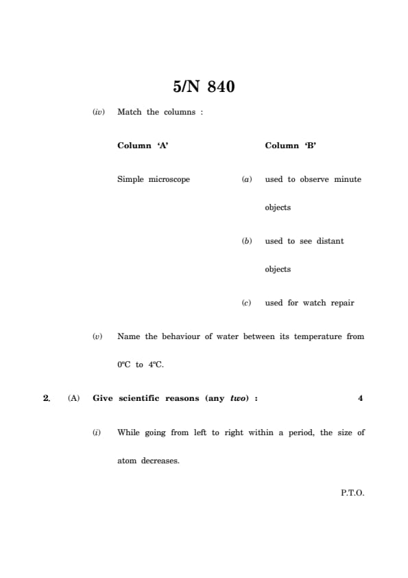 (v) Name the behaviour of water between its temperature from 0°C to 4°C.