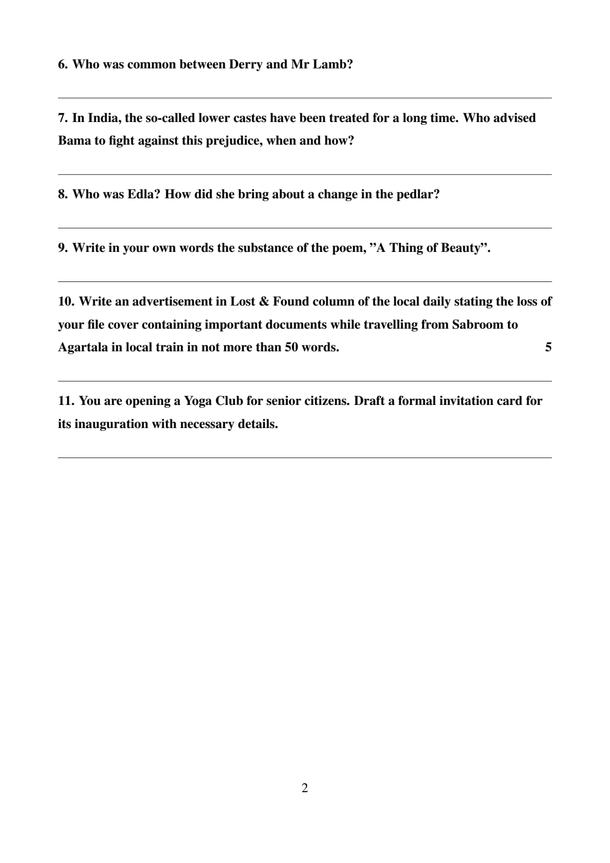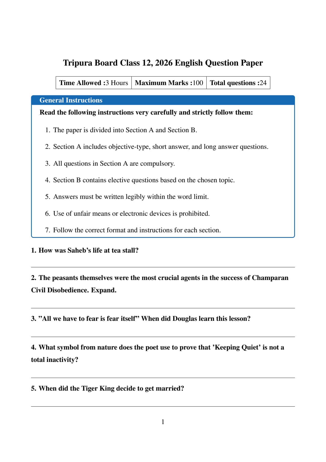 The official question paper of Tripura Board Class 12 English Board Exam 2026 is provided below. Students can download the official paper in PDF format for reference.