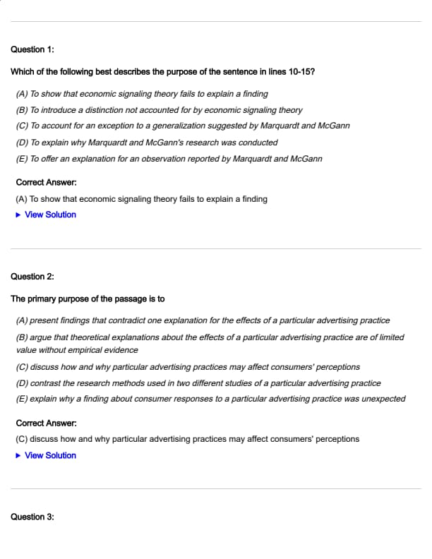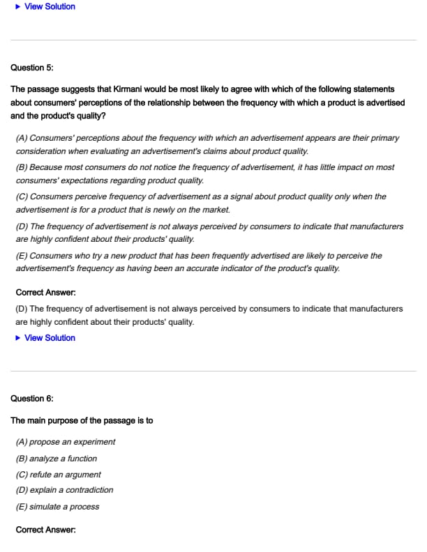- (E) explain why a finding about consumer responses to a particular advertising practice was unexpected
