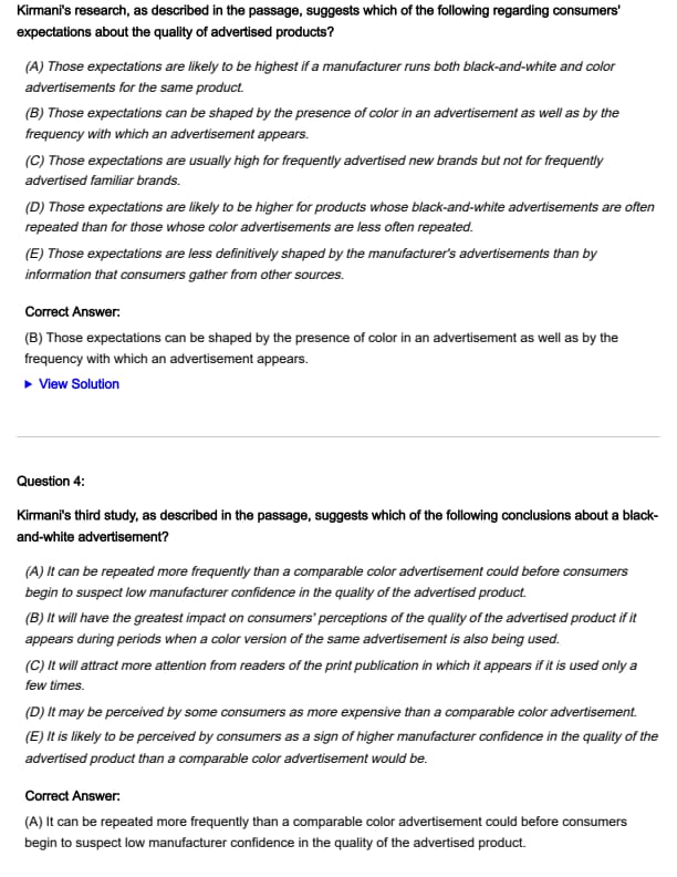 - (A) Those expectations are likely to be highest if a manufacturer runs both black-and-white and color advertisements for the same product.