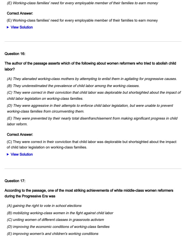 - (E) revise a traditional view of the role played by women reformers in enacting Progressive Era reforms