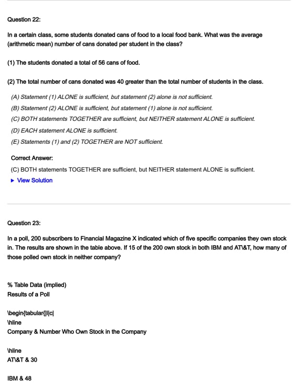 - (E) Statements (1) and (2) TOGETHER are NOT sufficient.