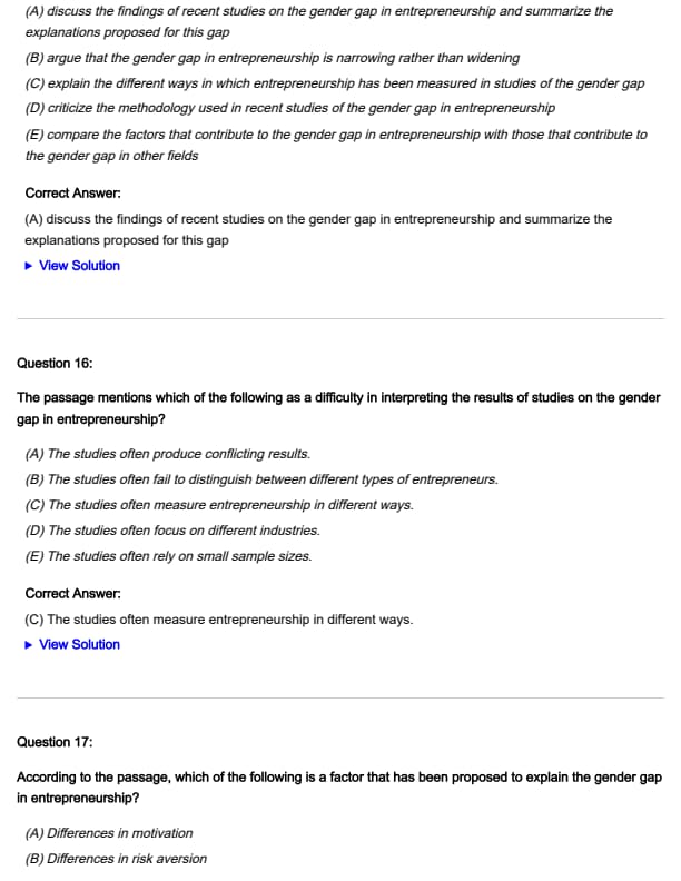 - (A) discuss the findings of recent studies on the gender gap in entrepreneurship and summarize the explanations proposed for this gap