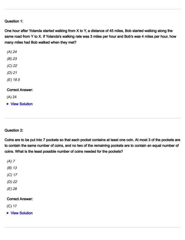 - Quantitative Reasoning: 21 questions, to be completed in 45 minutes.