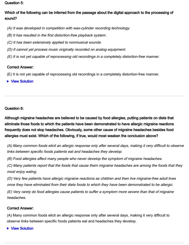 - (E) Very rarely do food allergies cause patients to suffer a symptom more severe than that of migraine headaches.