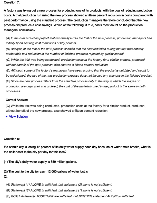 - (A) In the cost reduction project that eventually led to the trial of the new process, production managers had initially been seeking cost reductions of fifty percent.