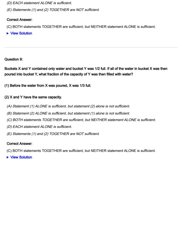 - (E) Statements (1) and (2) TOGETHER are NOT sufficient.
