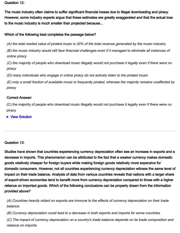 Studies have shown that countries experiencing currency depreciation often see an increase in exports and a decrease in imports. This phenomenon can be attributed to the fact that a weaker currency makes domestic goods relatively cheaper for foreign buyers while making foreign goods relatively more expensive for domestic consumers. However, not all countries experiencing currency depreciation witness the same level of impact on their trade balance. Analysis of data from various countries reveals that nations with a larger share of export-driven economies tend to benefit more from currency depreciation compared to those with a higher reliance on imported goods. Which of the following conclusions can be properly drawn from the information provided above?
